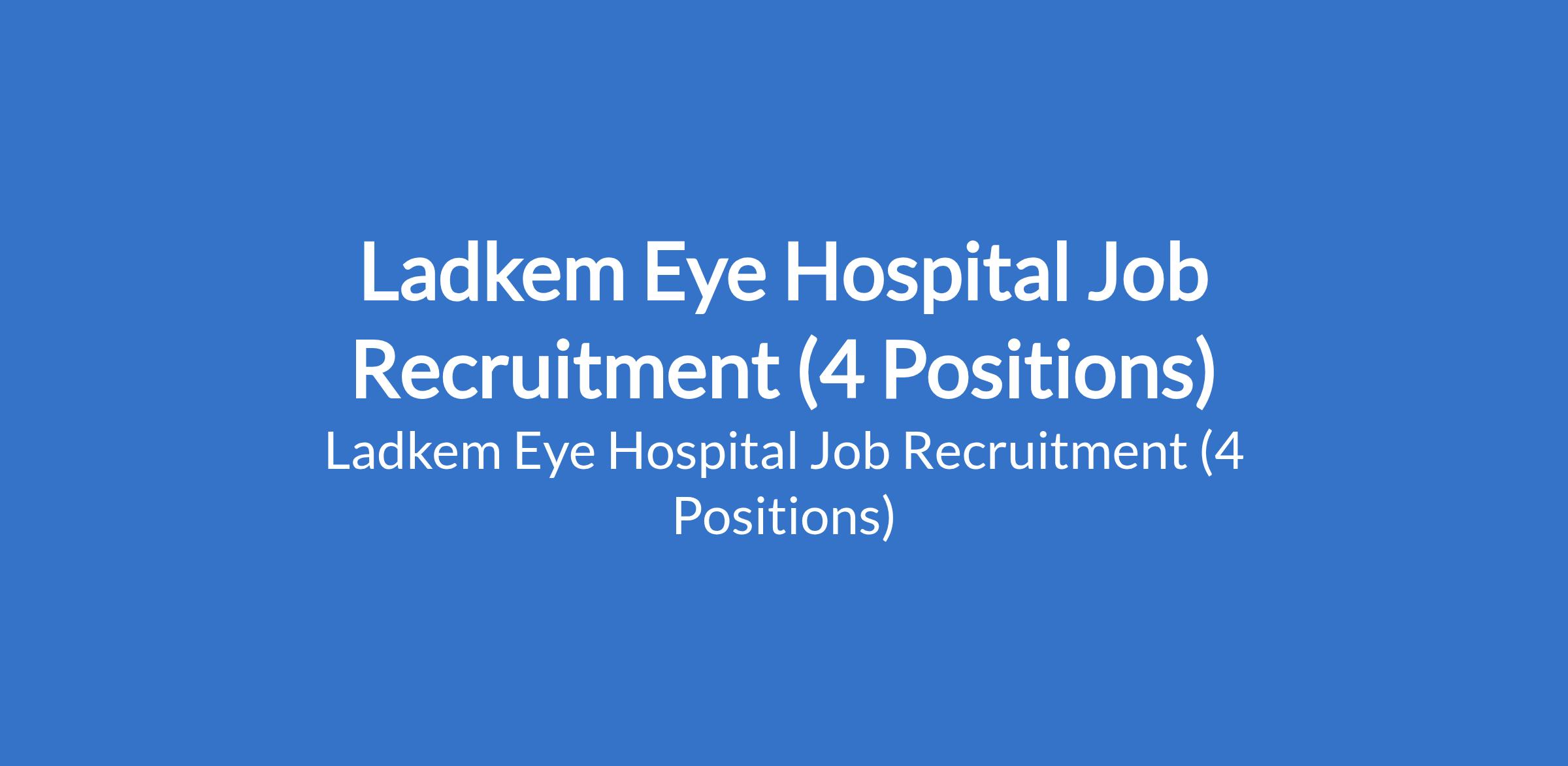 Ladkem Eye Hospital Job Recruitment (4 Positions)