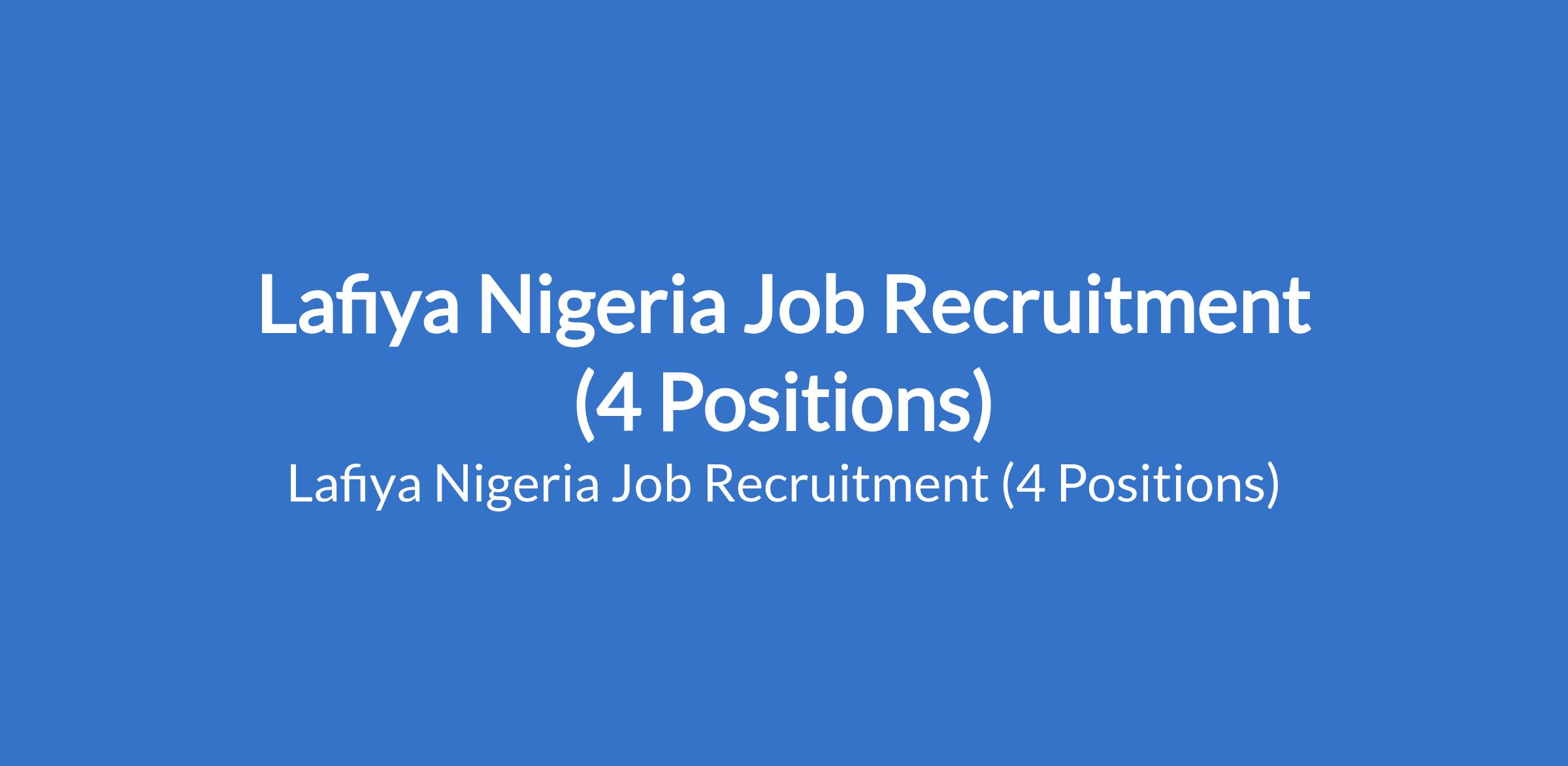 Lafiya Nigeria Job Recruitment (4 Positions)