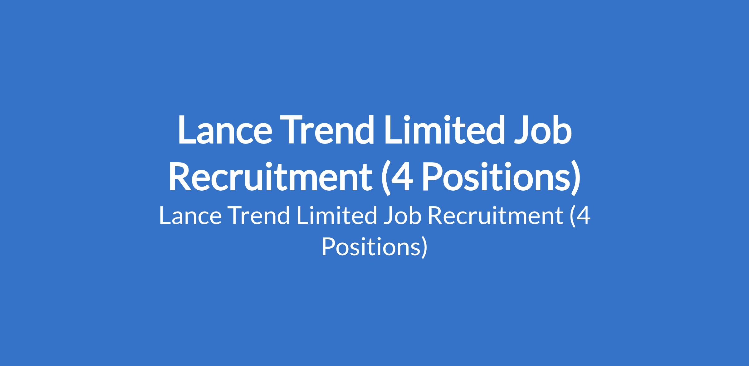 Lance Trend Limited Job Recruitment (4 Positions)