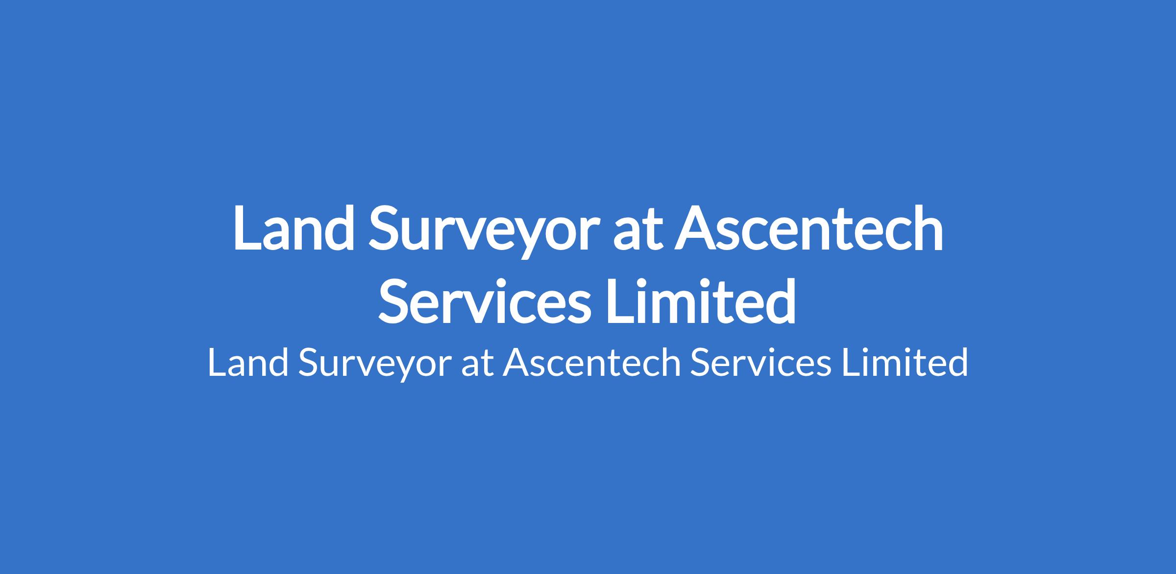 Ascentech Services Limited is recruiting to fill the position of: Land Surveyor. The position is located in Ekiti State. Interested candidates should possess a Bachelors Degree in Surveying or a related field with 25 years of previous experience as a Land Surveyor or in a similar role.