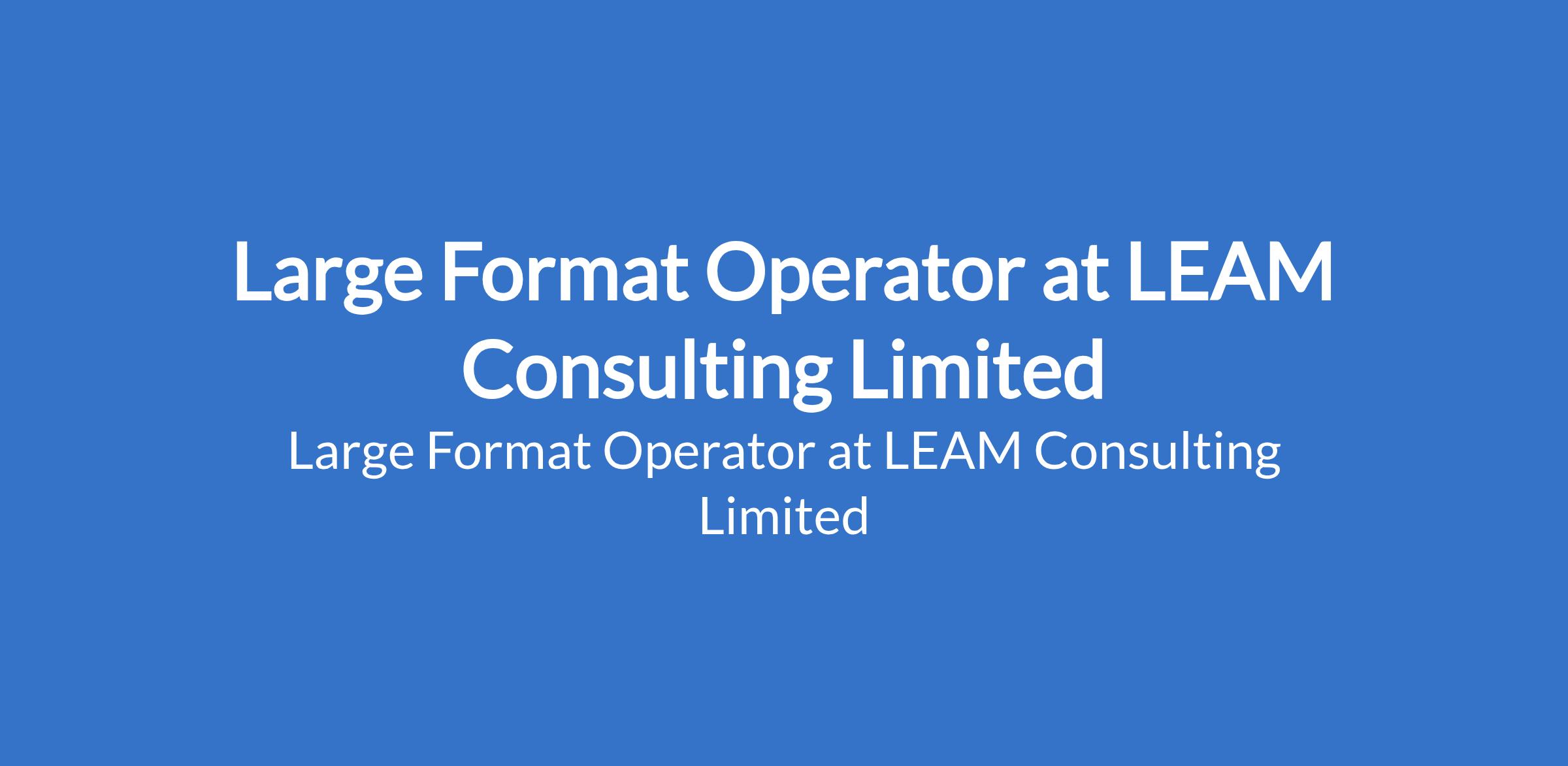 LEAM Consulting Limited - Our client is recruiting to fill the position of: Large Format Operator. The position is located in Mokola, Ibadan, Oyo State. Salary: N50,000 - N70,000 per month. Interested candidates should possess a minimum of an SSCE certification.