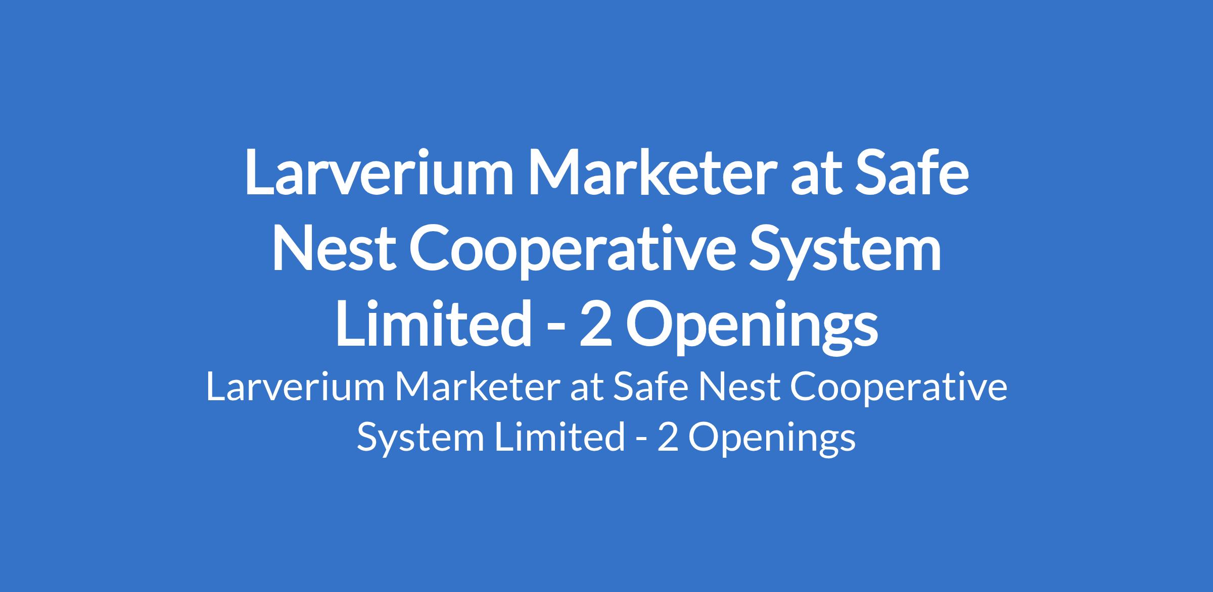 Safe Nest Cooperative System Limited is recruiting to fill the position of: Larverium Marketer. The position is located in Owerri - Imo and Port Harcourt - Rivers State. Salary: N200,000 - N700,000 per month. Interested candidates should possess an OND / HND / B.Sc in Marketing, Business Administration, Finance or related field with previous experience in field marketing, cooperative marketing, microfinance or fintech sales is an advantage.