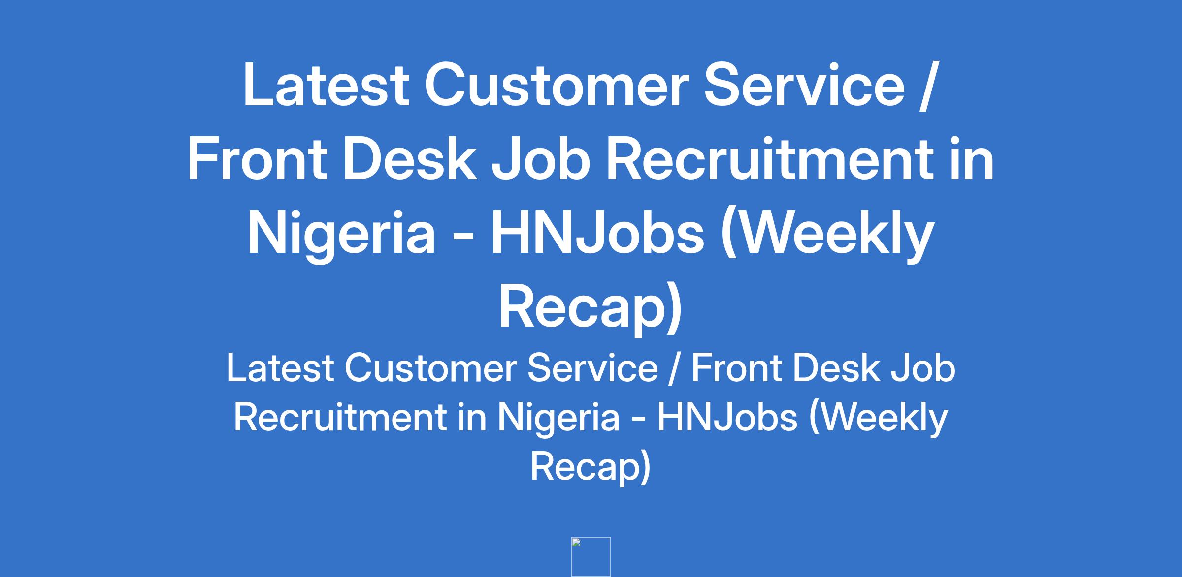 HNJ Customer Service / Front Desk Recruitment Opportunities - We (HNJ) are aware that the Customer Service Department is a core function critical to the success of many business sectors, from retail to Banking to Healthcare, and that's why we have taken the pain to compile a list of Customer Service related jobs just for you.