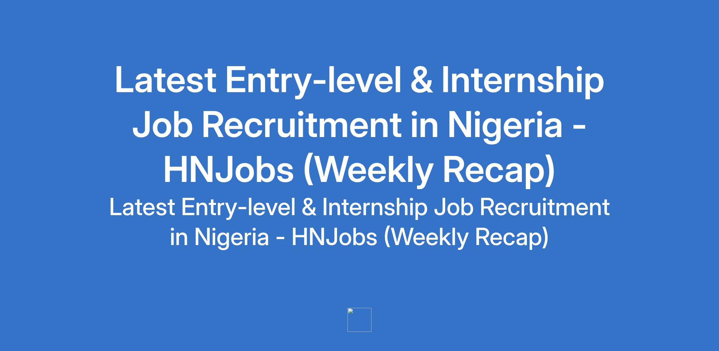 Latest Entry-level & Internship Job Recruitment in Nigeria - HNJobs (Weekly Recap)