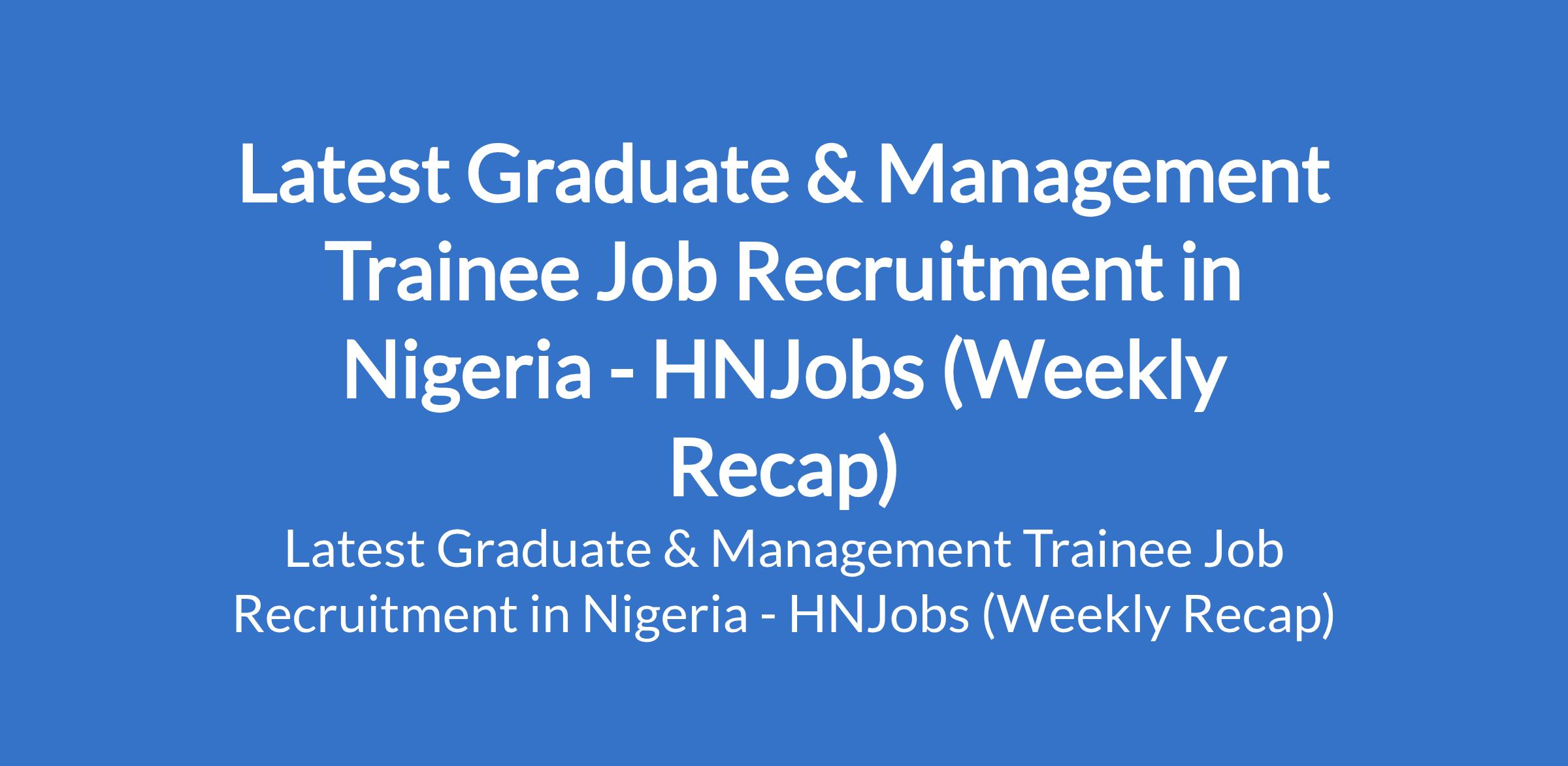 Latest Graduate & Management Trainee Job Recruitment in Nigeria - HNJobs (Weekly Recap)