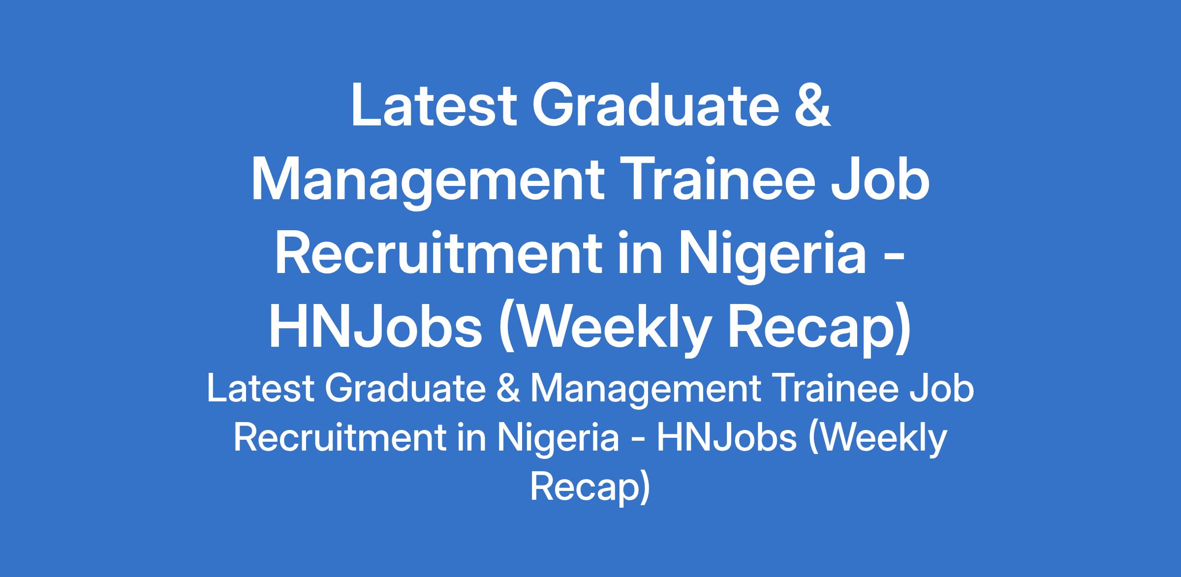 Latest Graduate & Management Trainee Job Recruitment in Nigeria - HNJobs (Weekly Recap)