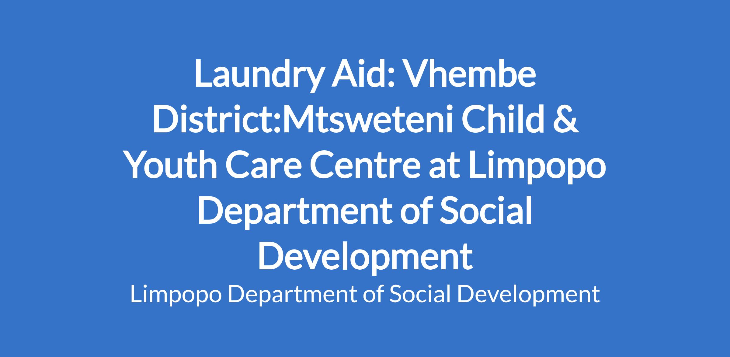 Laundry Aid: Vhembe District:Mtsweteni Child & Youth Care Centre at Limpopo Department of Social Development
