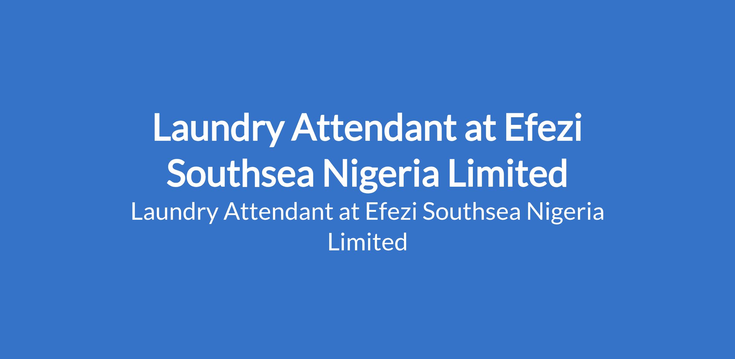 Efezi Southsea Nigeria Limited is recruiting to fill the position of: Laundry Attendant. The position is located in Surulere / Mushin, Lagos State. Salary: N60,000 - N70,000 monthly. Interested candidates should possess relevant qualifications.