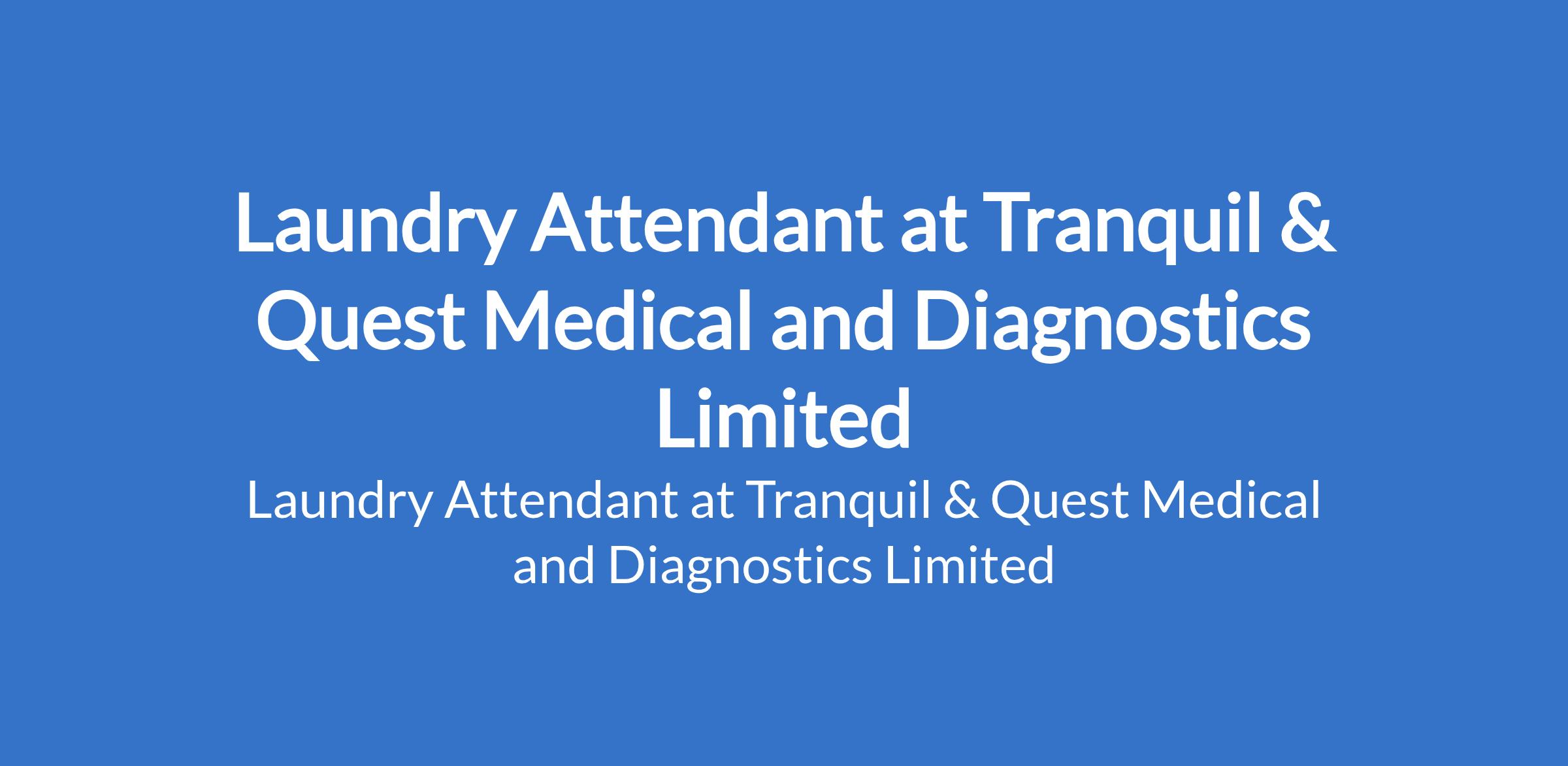 Laundry Attendant at Tranquil & Quest Medical and Diagnostics Limited