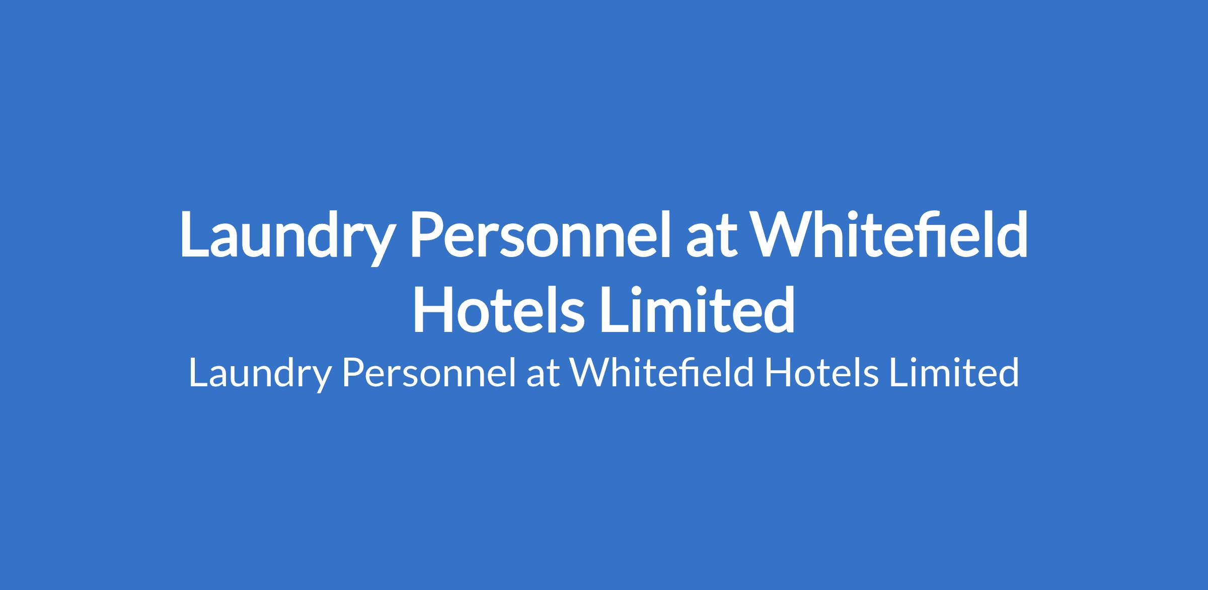 Laundry Personnel at Whitefield Hotels Limited