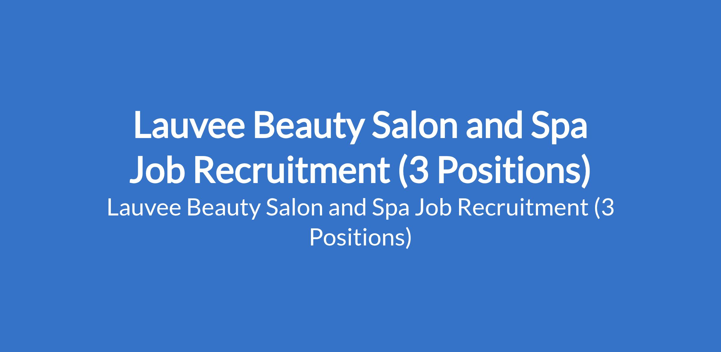 Lauvee Beauty Salon and Spa Job Recruitment (3 Positions)