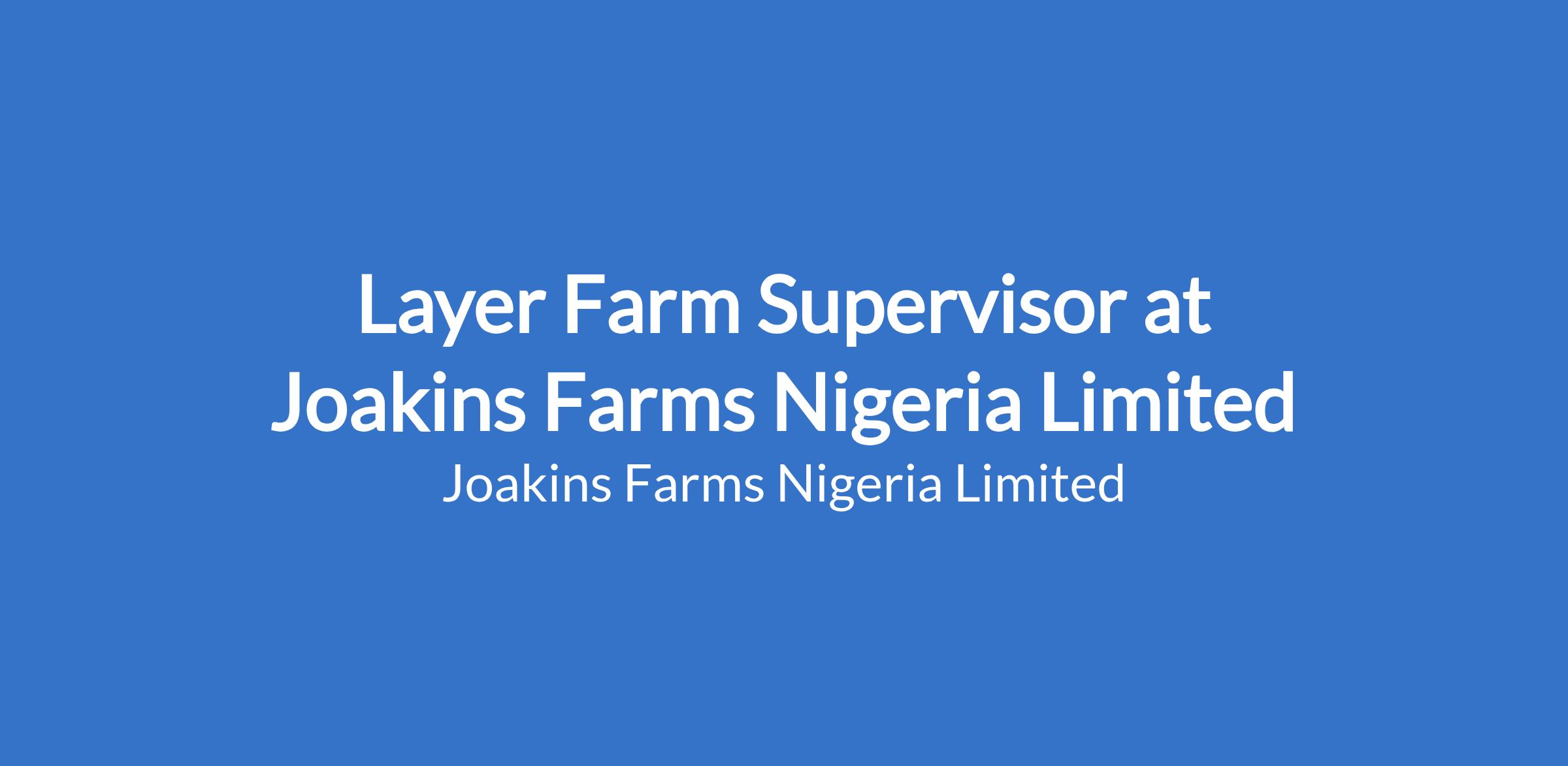 Layer Farm Supervisor at Joakins Farms Nigeria Limited