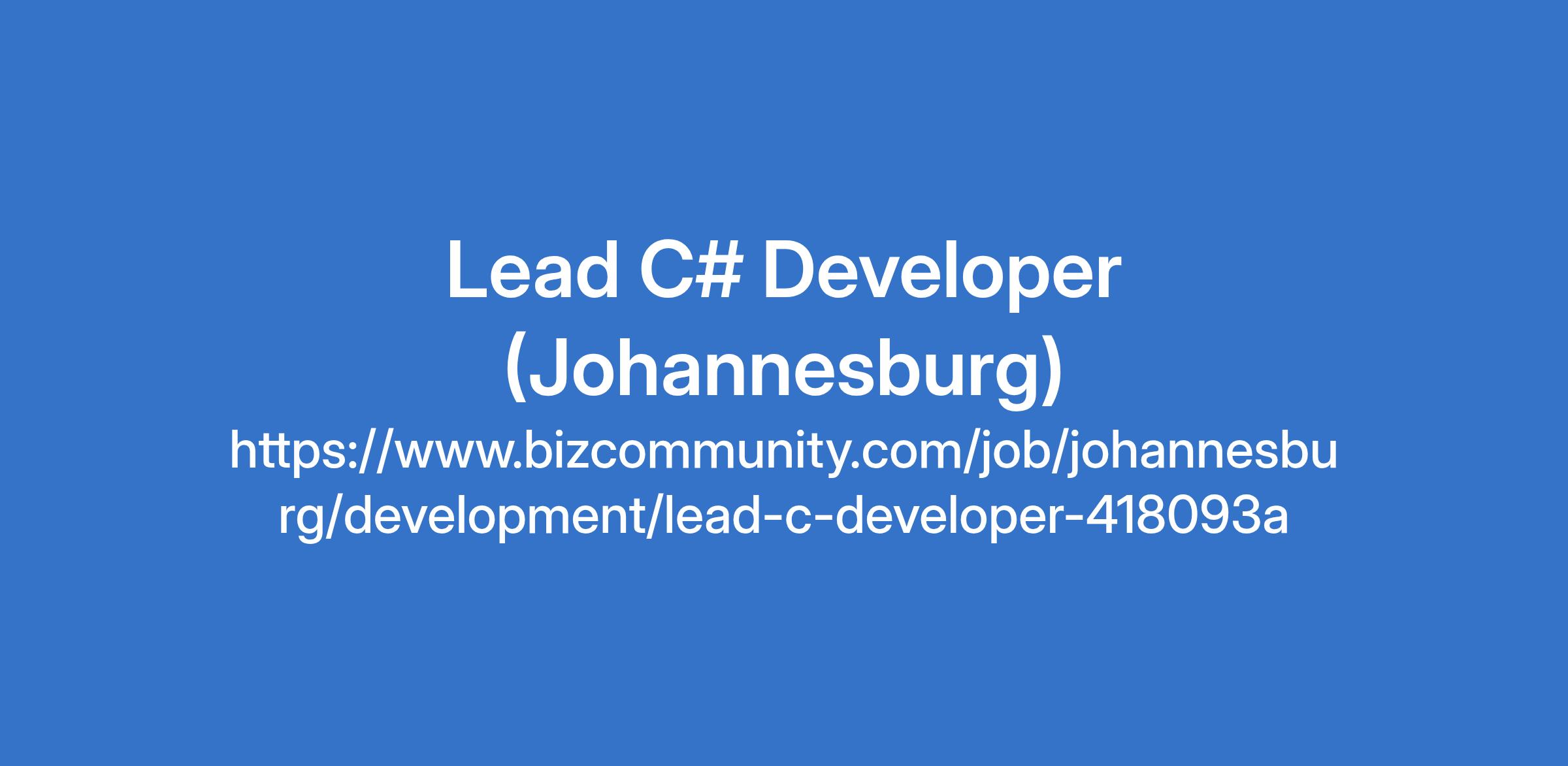 https://www.bizcommunity.com/job/johannesburg/development/lead-c-developer-418093a