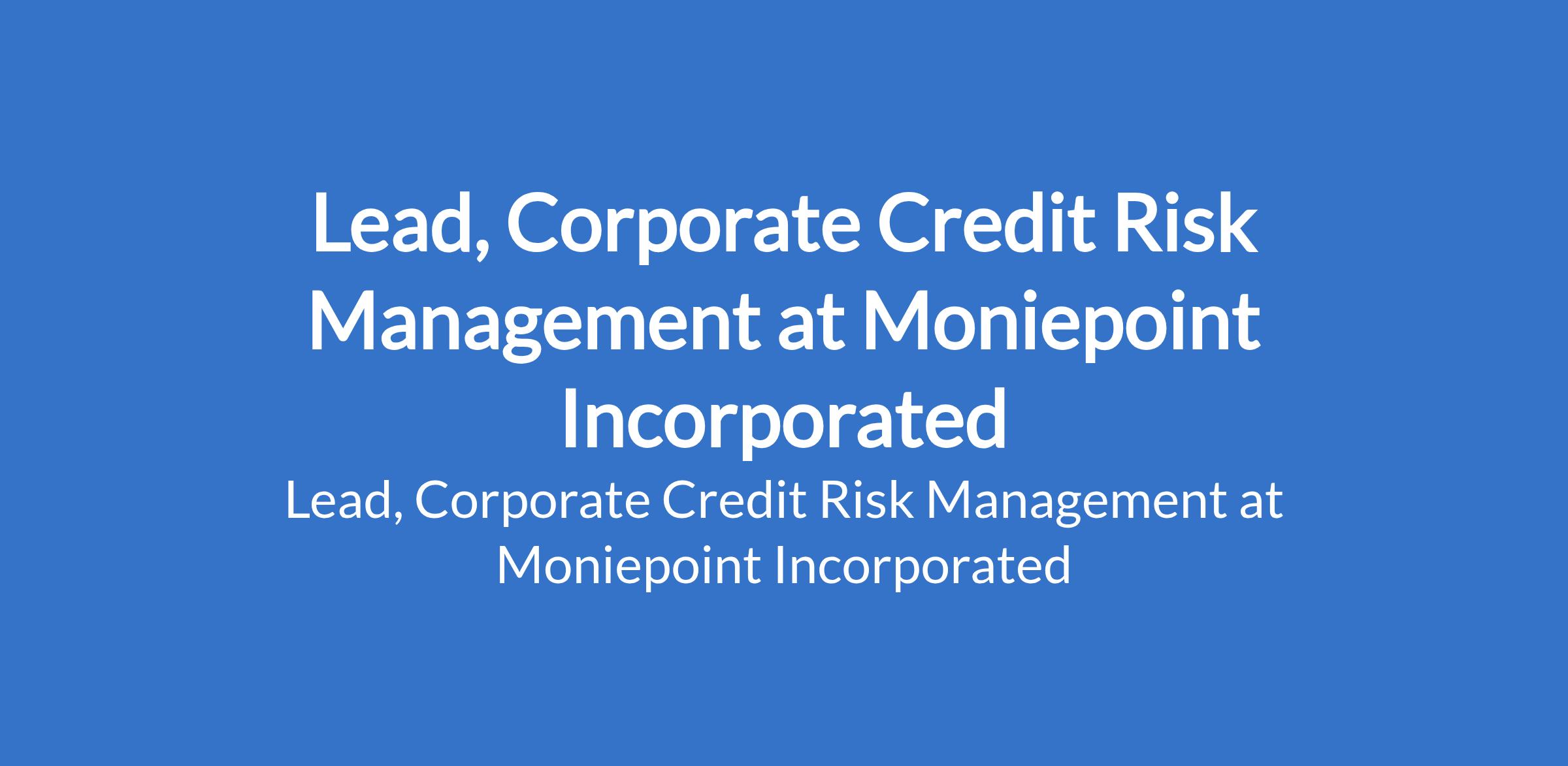Moniepoint Incorporated is recruiting to fill the position of: Lead, Corporate Credit Risk Management. The position is located in Lagos State. Interested candidates should possess a Bachelors Degree in Finance, Accounting, Economics, Mathematics, Statistics, or related fields with 810 years experience in credit risk, lending, or risk management within banking, fintech, or financial services.