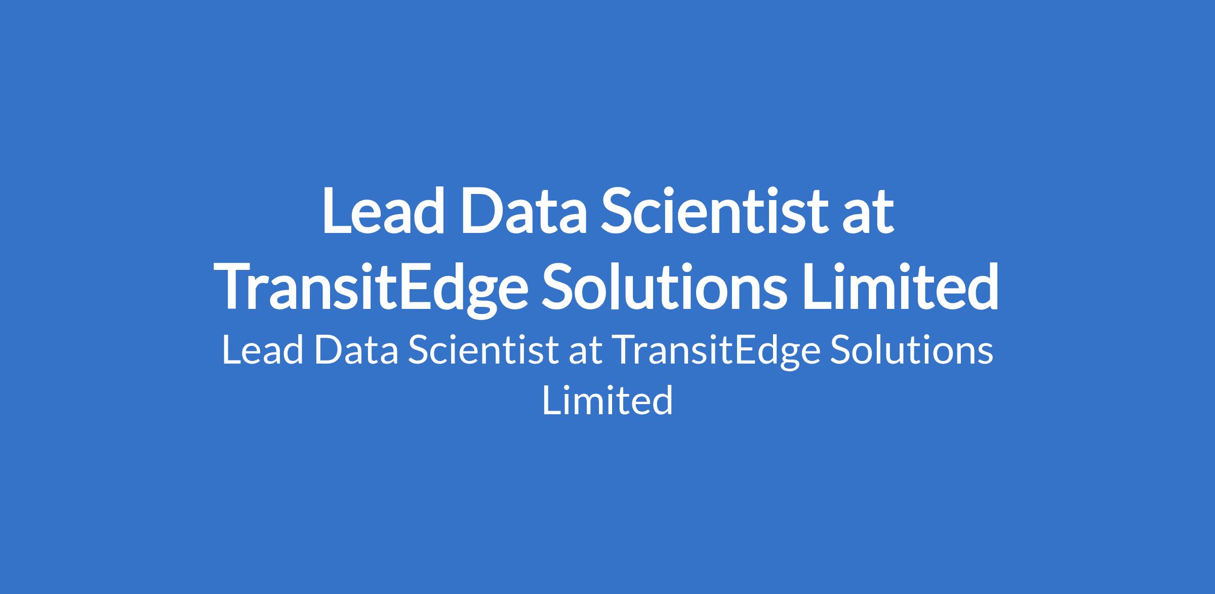 TransitEdge Solutions Limited is recruiting to fill the position of: Lead Data Scientist. The position is located in Lagos State. Interested candidates should possess relevant qualifications with proven experience as a Data Scientist or similar role.