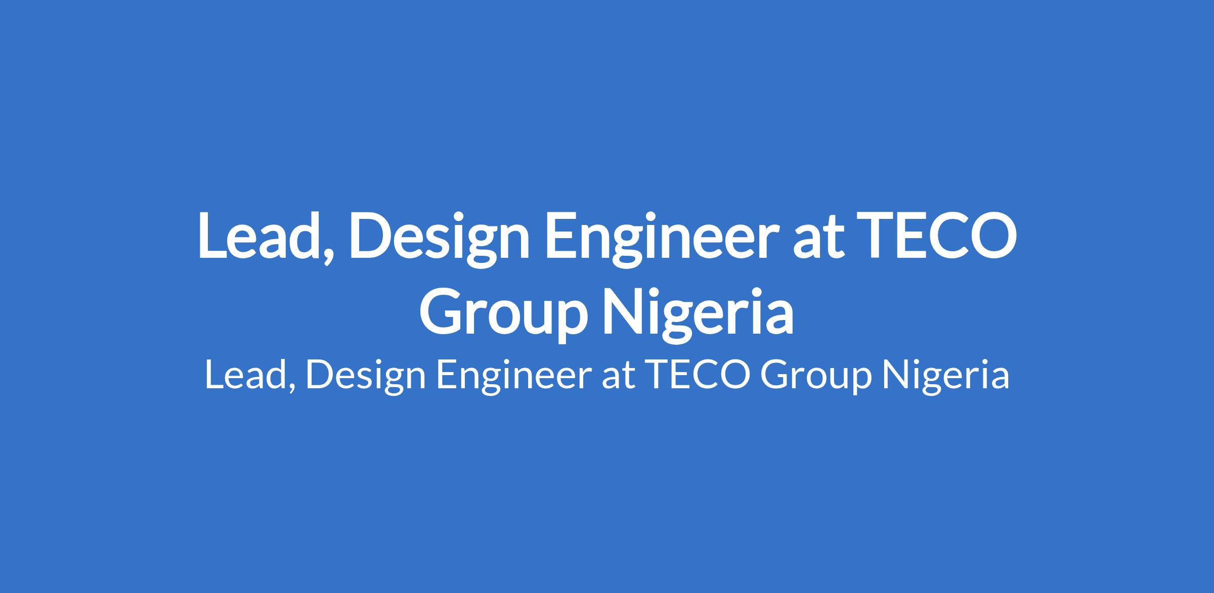 TECO Group Nigeria is recruiting to fill the position of: Lead, Design Engineer. The position is located in Ondo State. Salary: N500,000 - N750,000 monthly. Interested candidates should possess a B.Eng / B.Tech / HND in Agricultural Engineering or Mechanical Engineering with 58 years relevant experience.