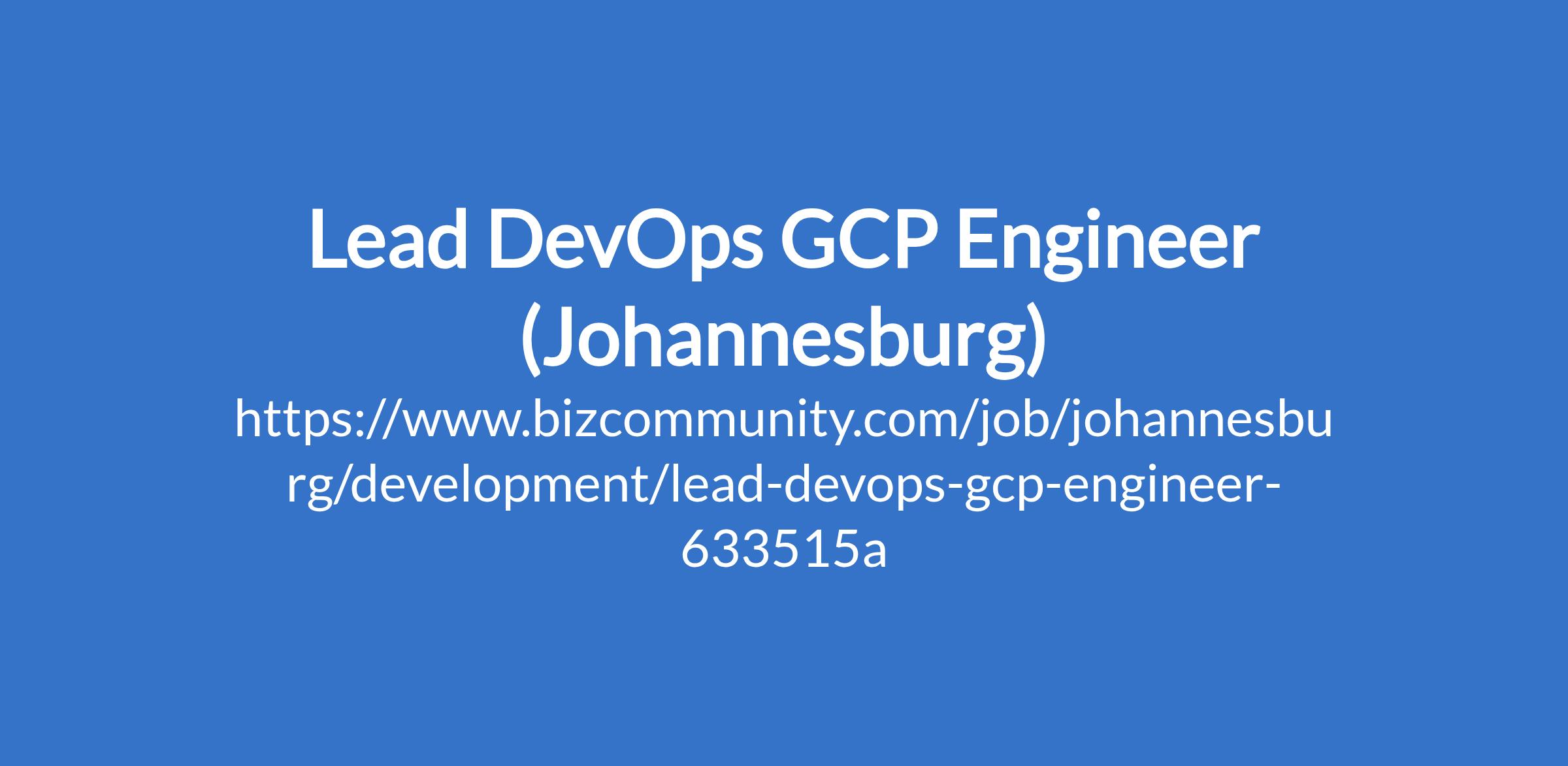 Lead DevOps GCP Engineer (Johannesburg)