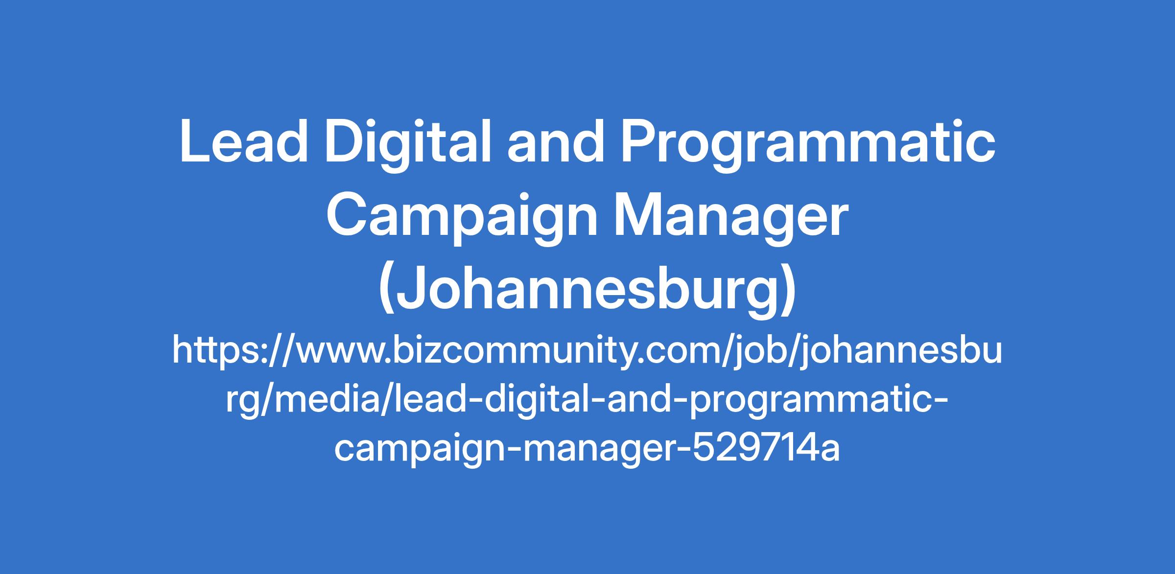 Lead Digital and Programmatic Campaign Manager (Johannesburg)