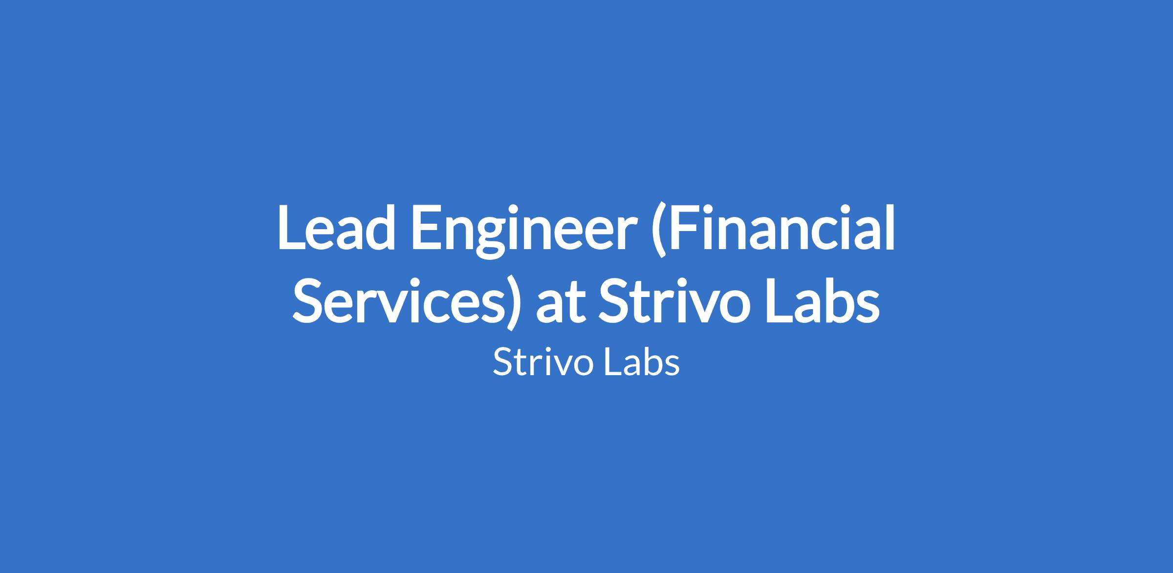 Lead Engineer (Financial Services) at Strivo Labs