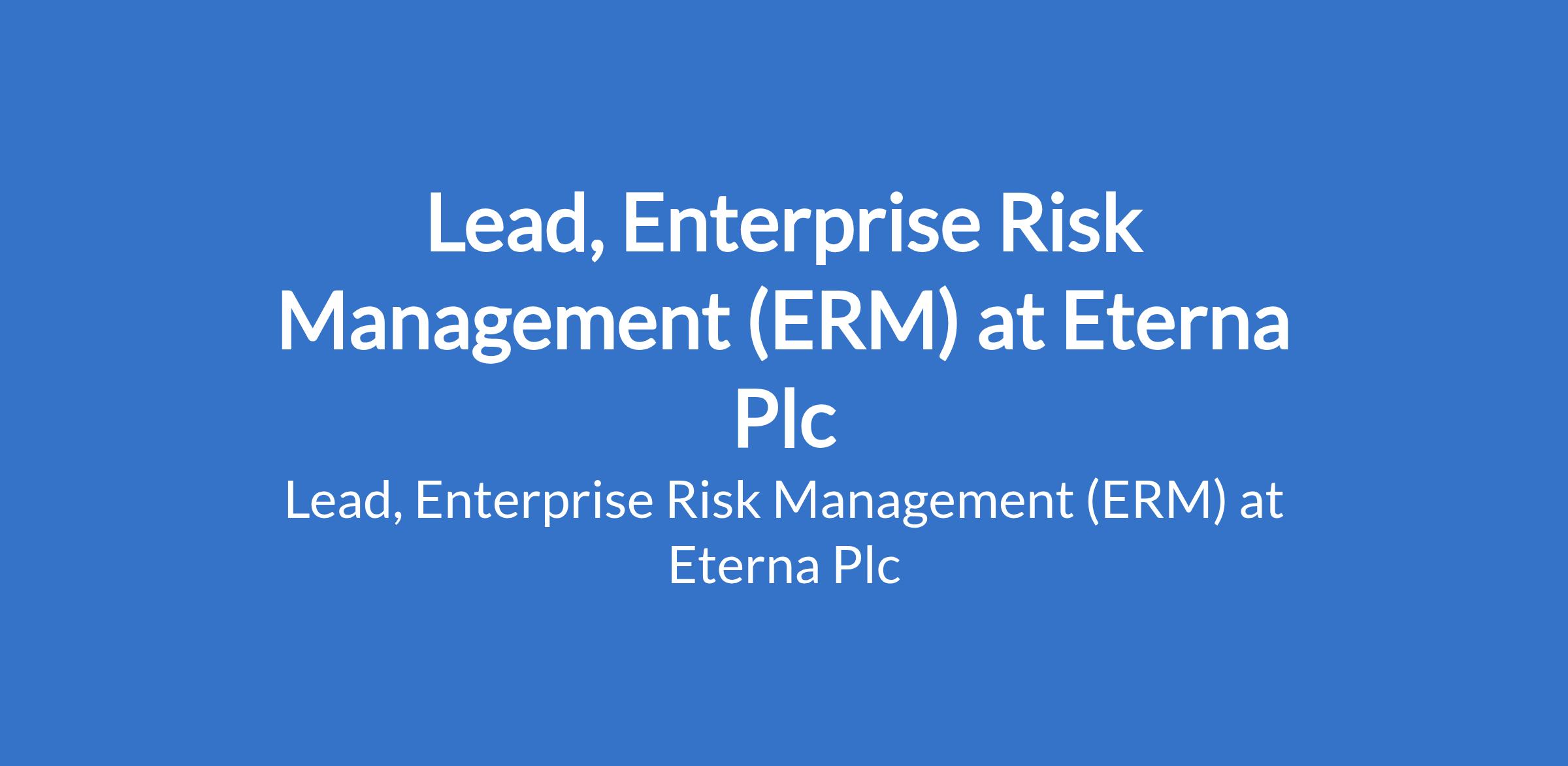 Eterna Plc is recruiting to fill the position of: Lead, Enterprise Risk Management (ERM). The position is located in Apapa, Lagos State. Interested candidates should possess a Bachelor's Degree in finance, Accounting, Business Administration, or a related field; Professional certifications such as CRMA FRM, CFA or ACCA will be an added advantage with 7-10 years experience in risk management.