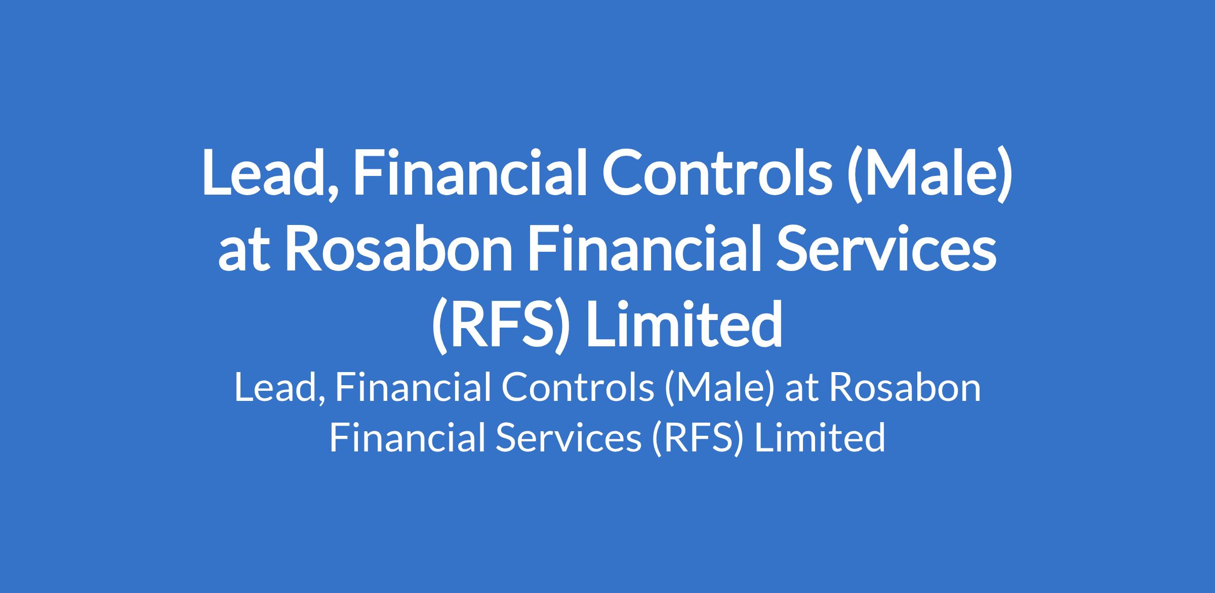 Rosabon Financial Services (RFS) Limited is recruiting to fill the position of: Lead, Financial Controls (Male). The position is located in Lagos State. Salary: N700,000 - N1,200,000 / month. Interested candidates should possess a Bachelors Degree in Accounting, Finance, or a related field with a minimum of 6 years in financial management, with at least 4 years in a leadership capacity.