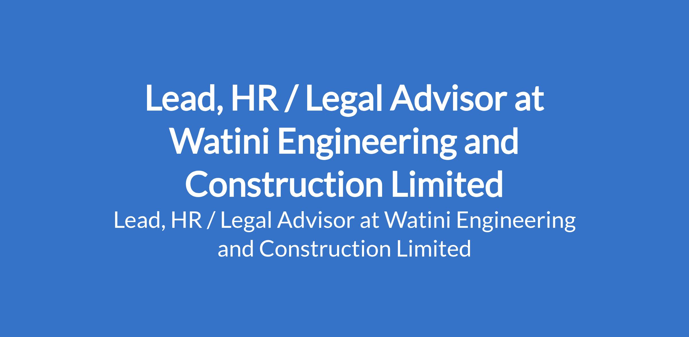 Watini Engineering and Construction Limited is recruiting to fill the position of: Lead, HR / Legal Advisor. The position is located in VGC - Ajah, Lagos State. Interested candidates should possess an LLB Degree with a minimum of 1 year experience, and must reside in VGC, Ajah, or nearby areas.