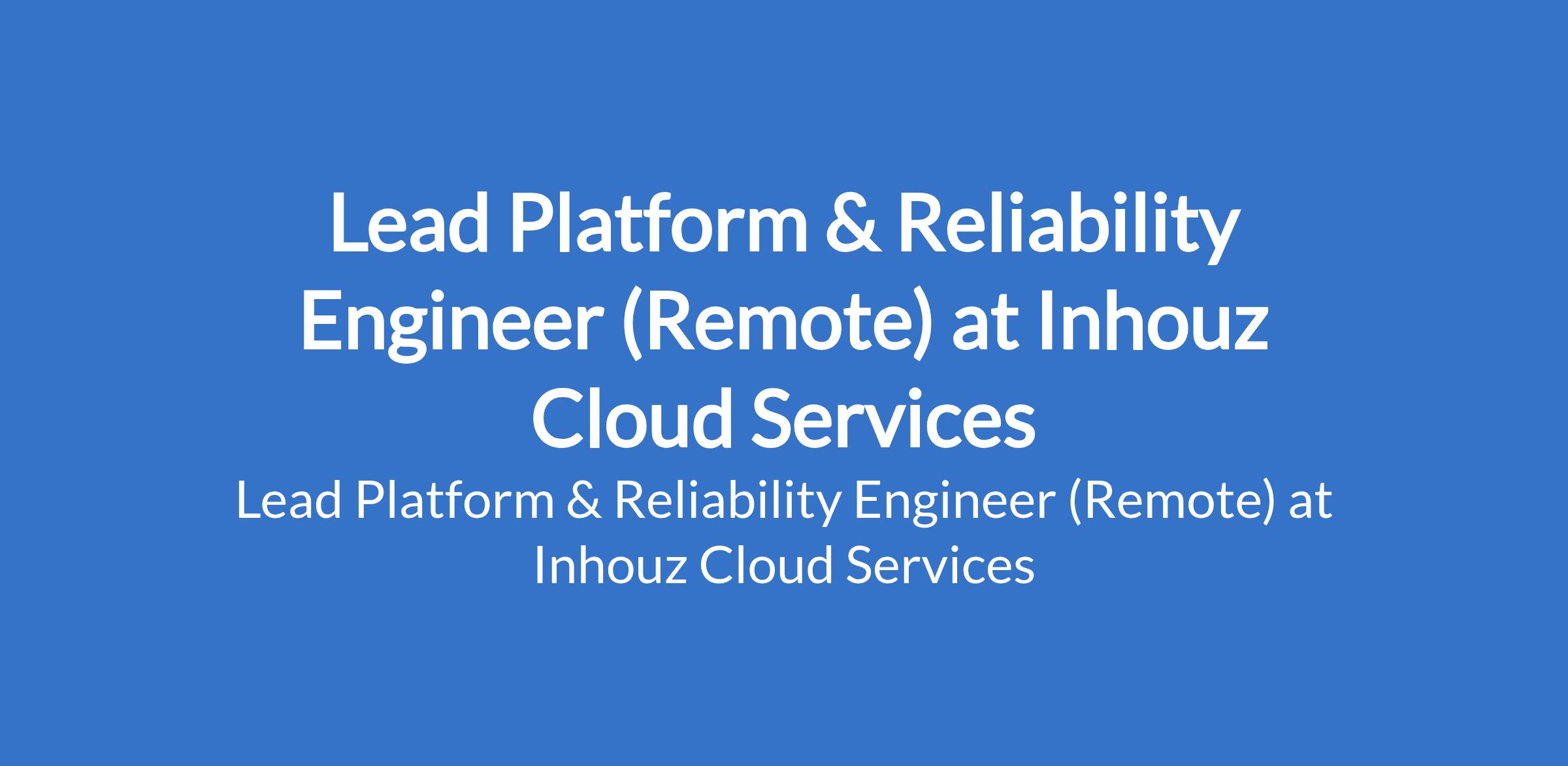 Inhouz Cloud Services is recruiting to fill the position of: Lead Platform & Reliability Engineer. This is a Remote position. Salary: N400,000 - N500,000 / month. Interested candidates should possess a Bachelor's Degree with 2 - 5 years of experience.