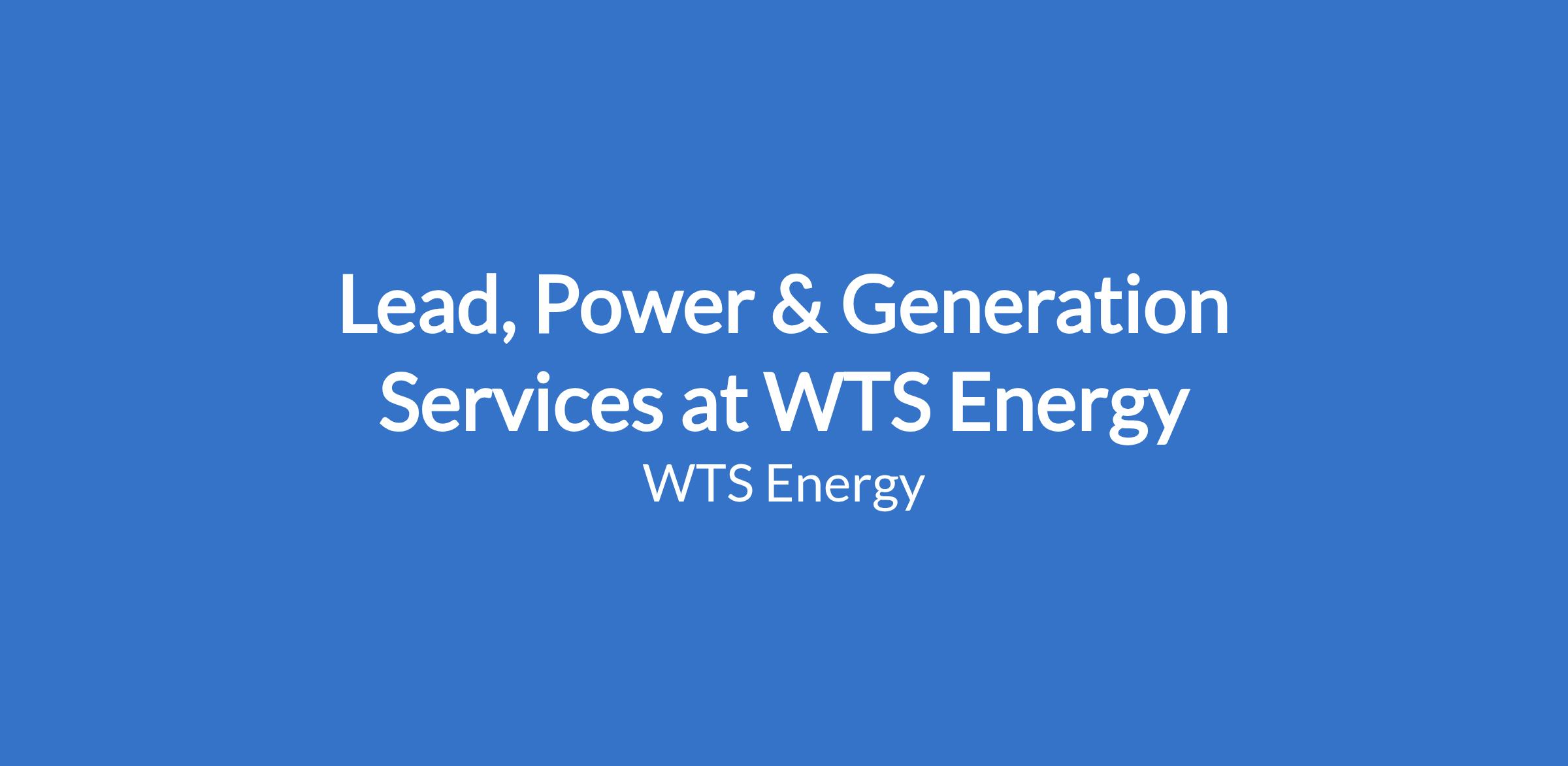 Lead, Power & Generation Services at WTS Energy