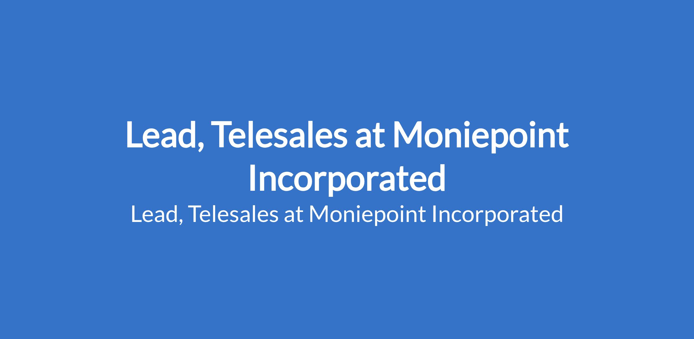 Moniepoint Incorporated is recruiting to fill the position of: Lead, Telesales. The position is located in Lagos State. Interested candidates should possess relevant qualifications with a minimum of 3 years of experience in a call centre environment.