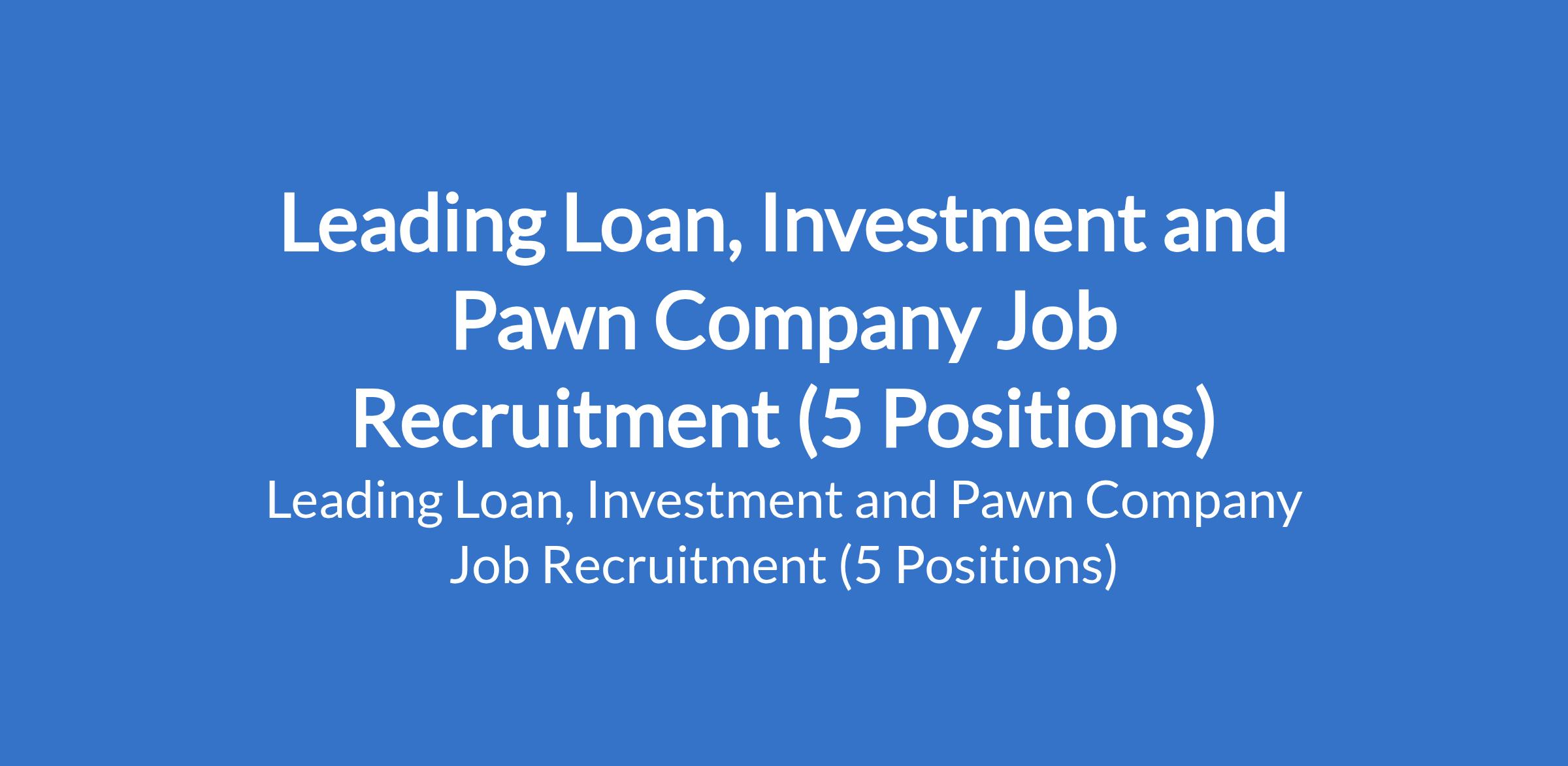 Leading Loan, Investment and Pawn Company is recruiting suitably qualified candidates to fill the following positions in Lagos State: HR Assistant, Customer Retention / Customer Service Executive, Operations Manager, Growth Team Lead, and IT Personnel.