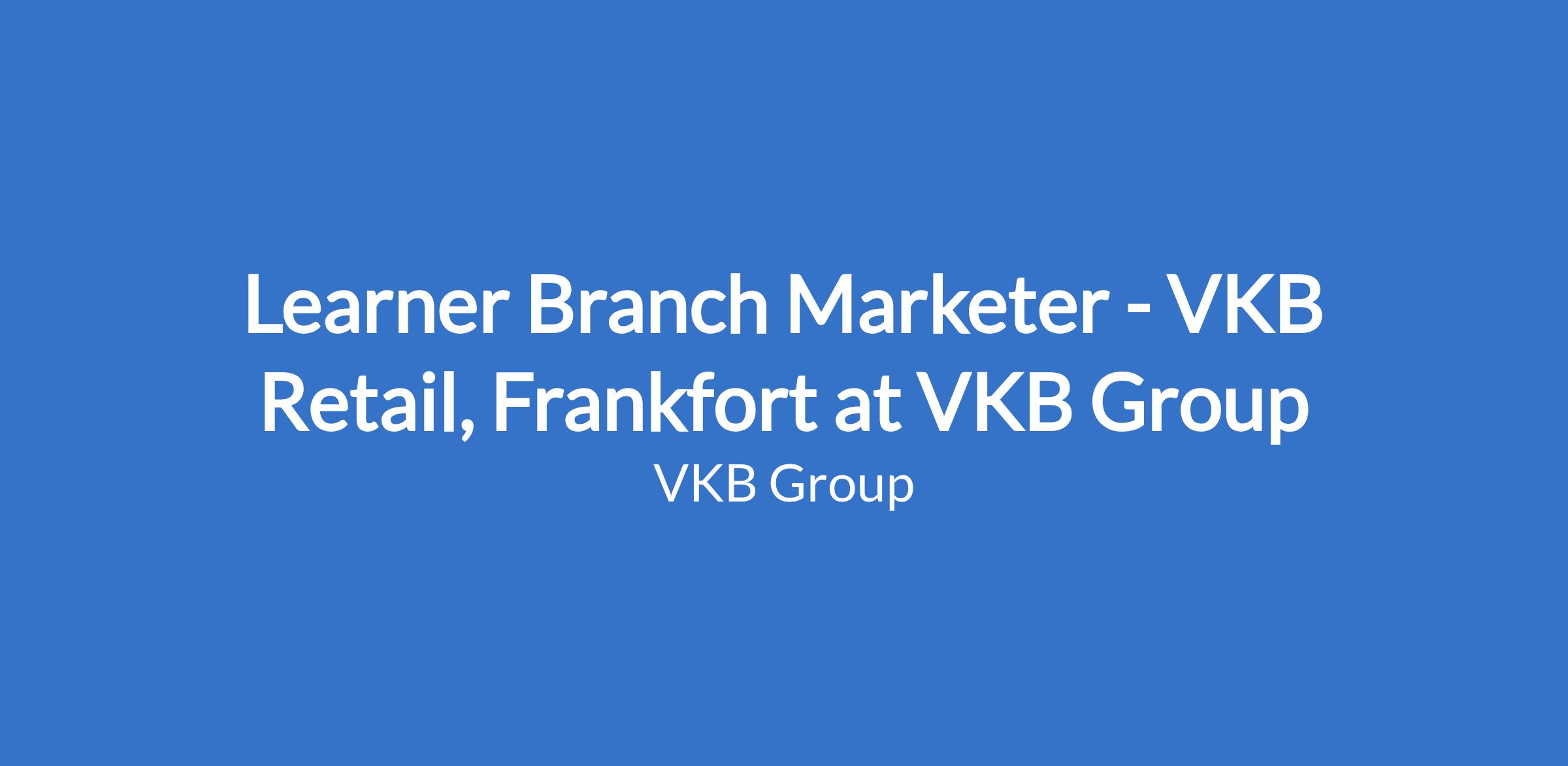 Learner Branch Marketer - VKB Retail, Frankfort at VKB Group