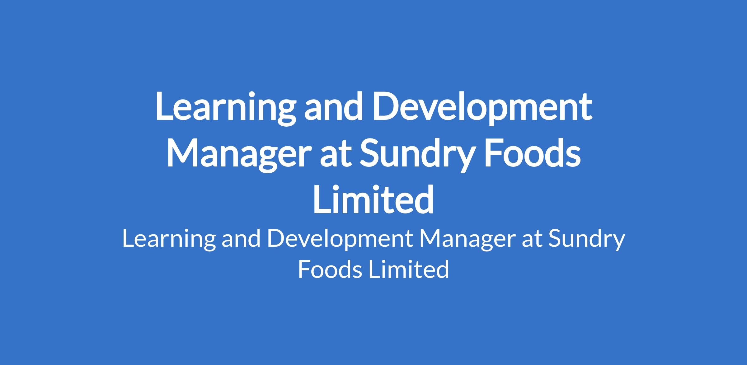 Sundry Foods Limited is recruiting to fill the position of: Learning and Development Manager. The position is located in Port Harcourt, River State. Interested candidates should possess a Bachelor's Degree or equivalent experience in Business, Human Resources, or related areas with 10+ years of experience working in Human Resources.