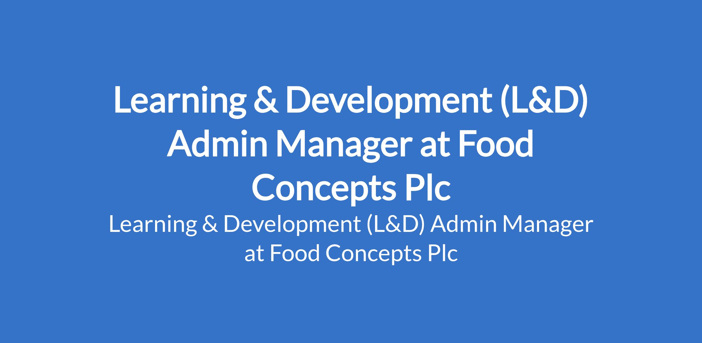 Food Concepts Plc is recruiting to fill the position of: Learning & Development (L&D) Admin Manager. The position is located in Lagos State. Interested candidates should possess a Bachelors Degree in Business Administration, Human Resources, Education, or a related field with 3-4 years in training administration, learning and development, or human resources experience or similar role.