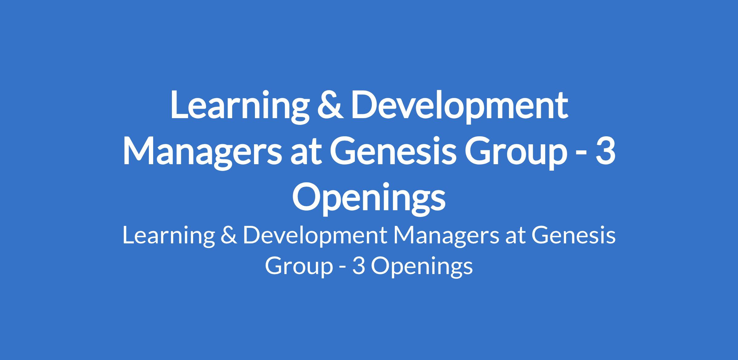 Genesis Group is recruiting to fill the position of: Learning & Development Manager. The position is located in Abuja, Lagos and Port Harcourt - Rivers States. Interested candidates should possess a Bachelors Degree in HR, Psychology, or a related field; a master's degree is preferred with a minimum of 5 years in L&D, human resources, or instructional design.