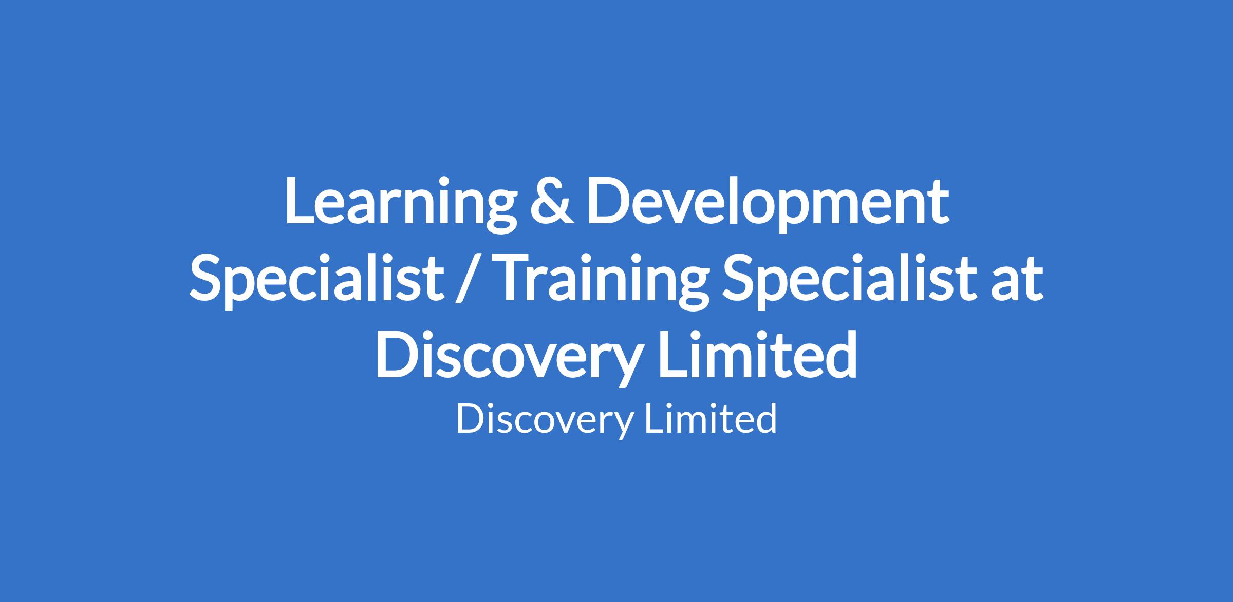 Learning & Development Specialist / Training Specialist at Discovery Limited