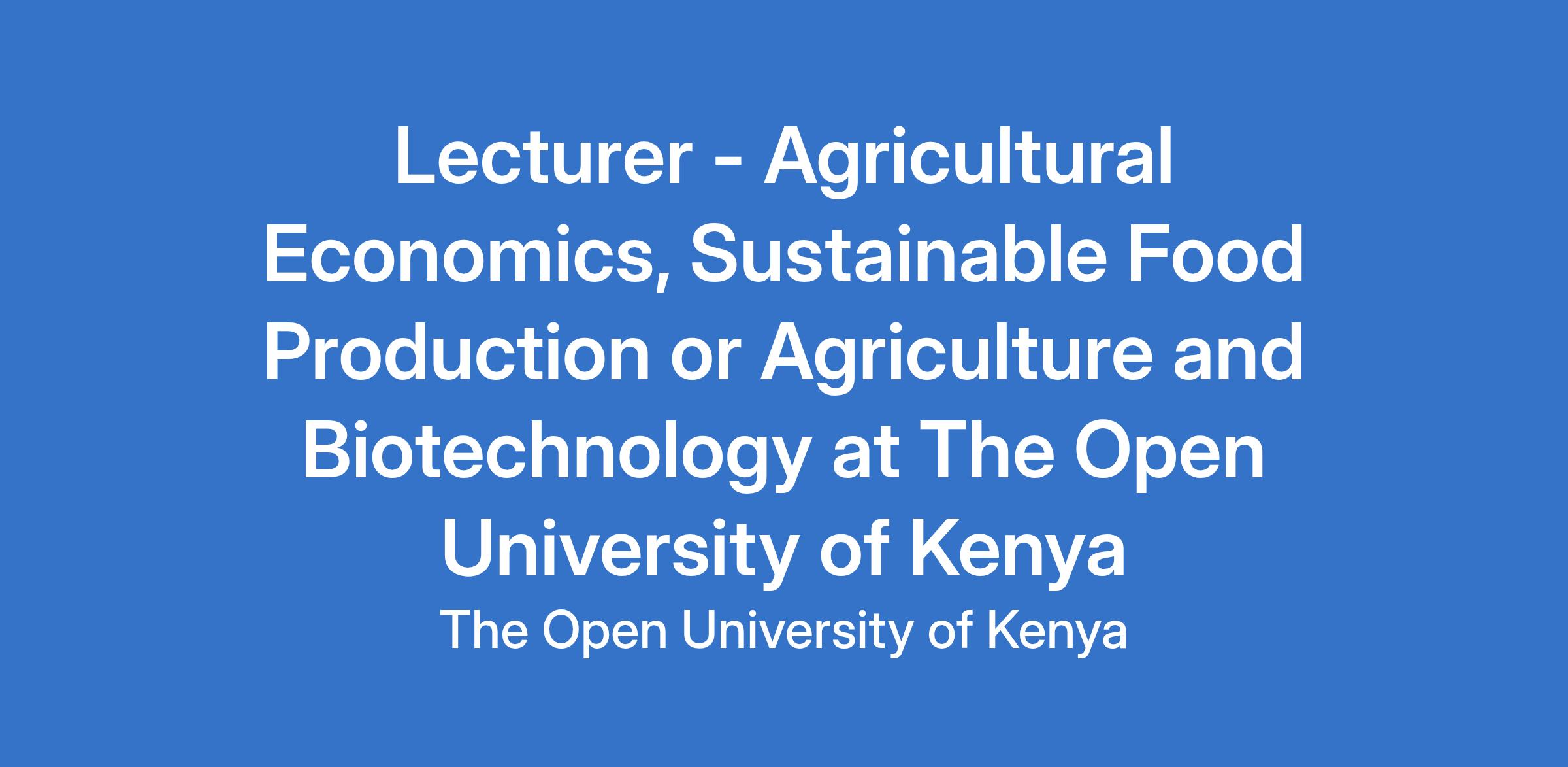 Lecturer - Agricultural Economics, Sustainable Food Production or Agriculture and Biotechnology at The Open University of Kenya