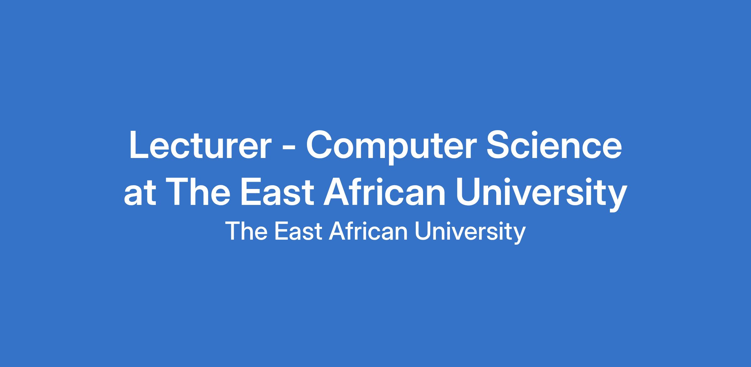 Lecturer - Computer Science at The East African University