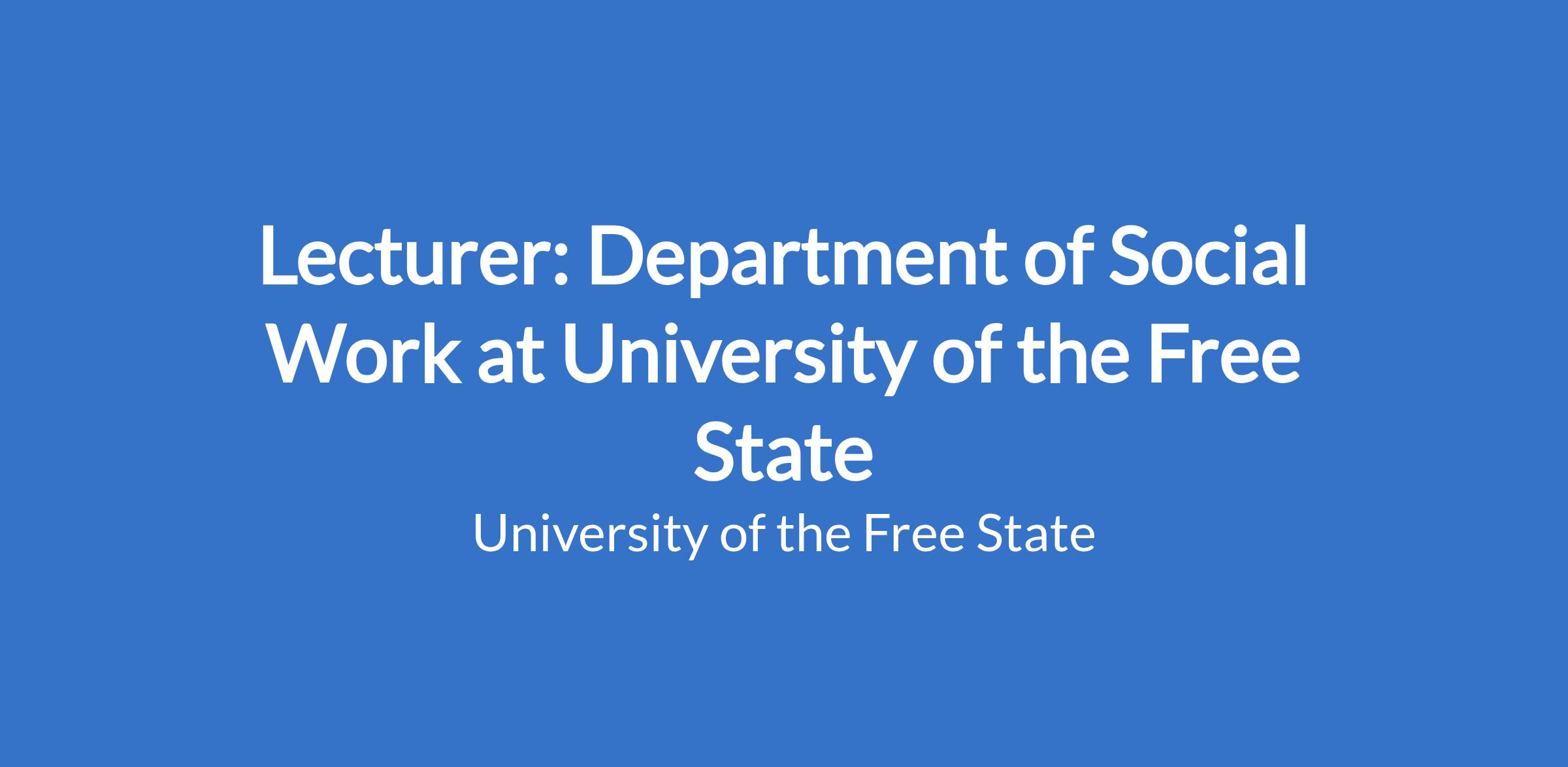 Master's degree in Social Work or closely related discipline on NQF Level 9 (contract appointment: 5 years during which a PhD in Social Work or closely related discipline on NQF Level 10 MUST be obtained to be converted into a permanent position).