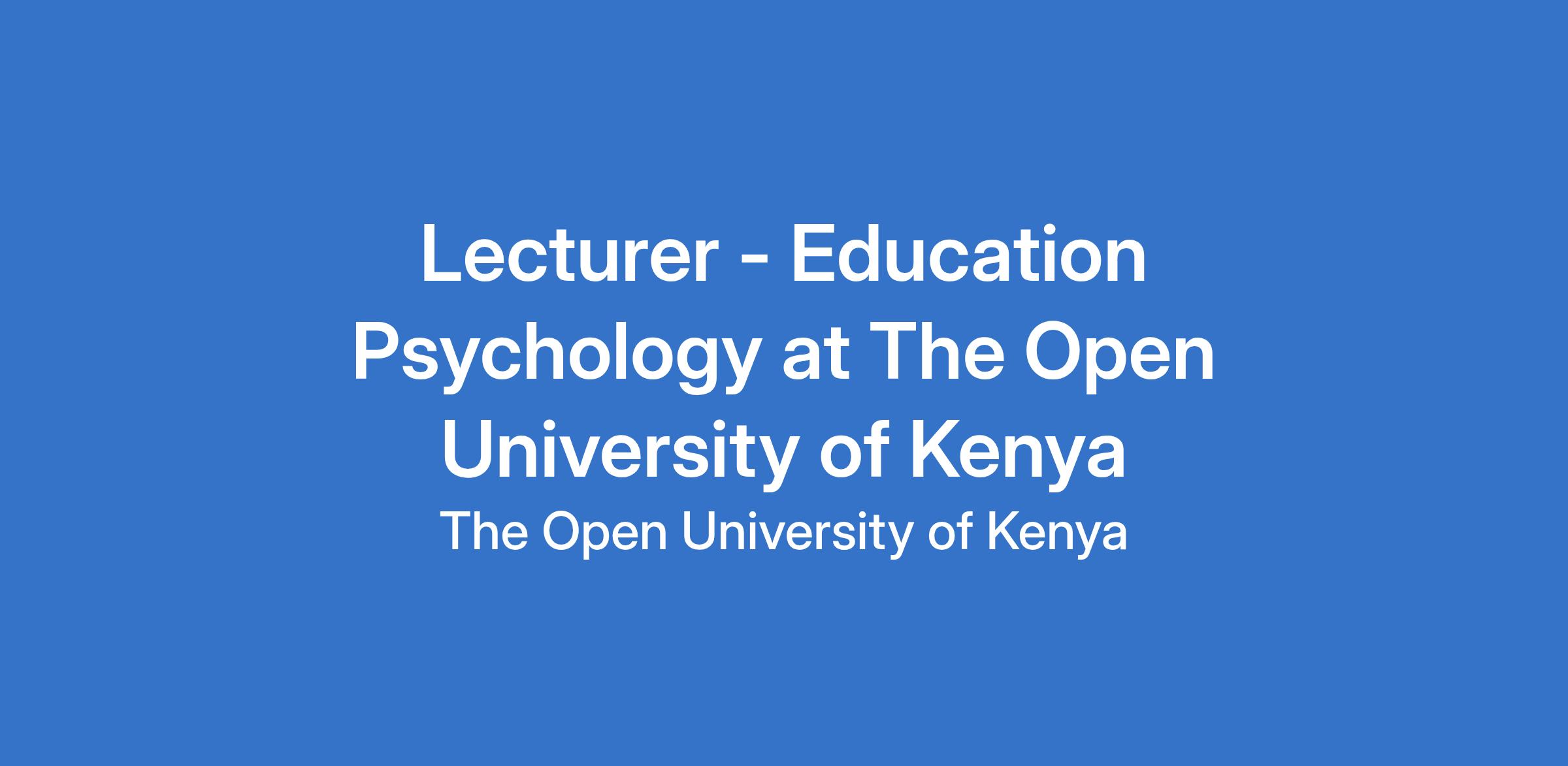 Lecturer - Education Psychology at The Open University of Kenya
