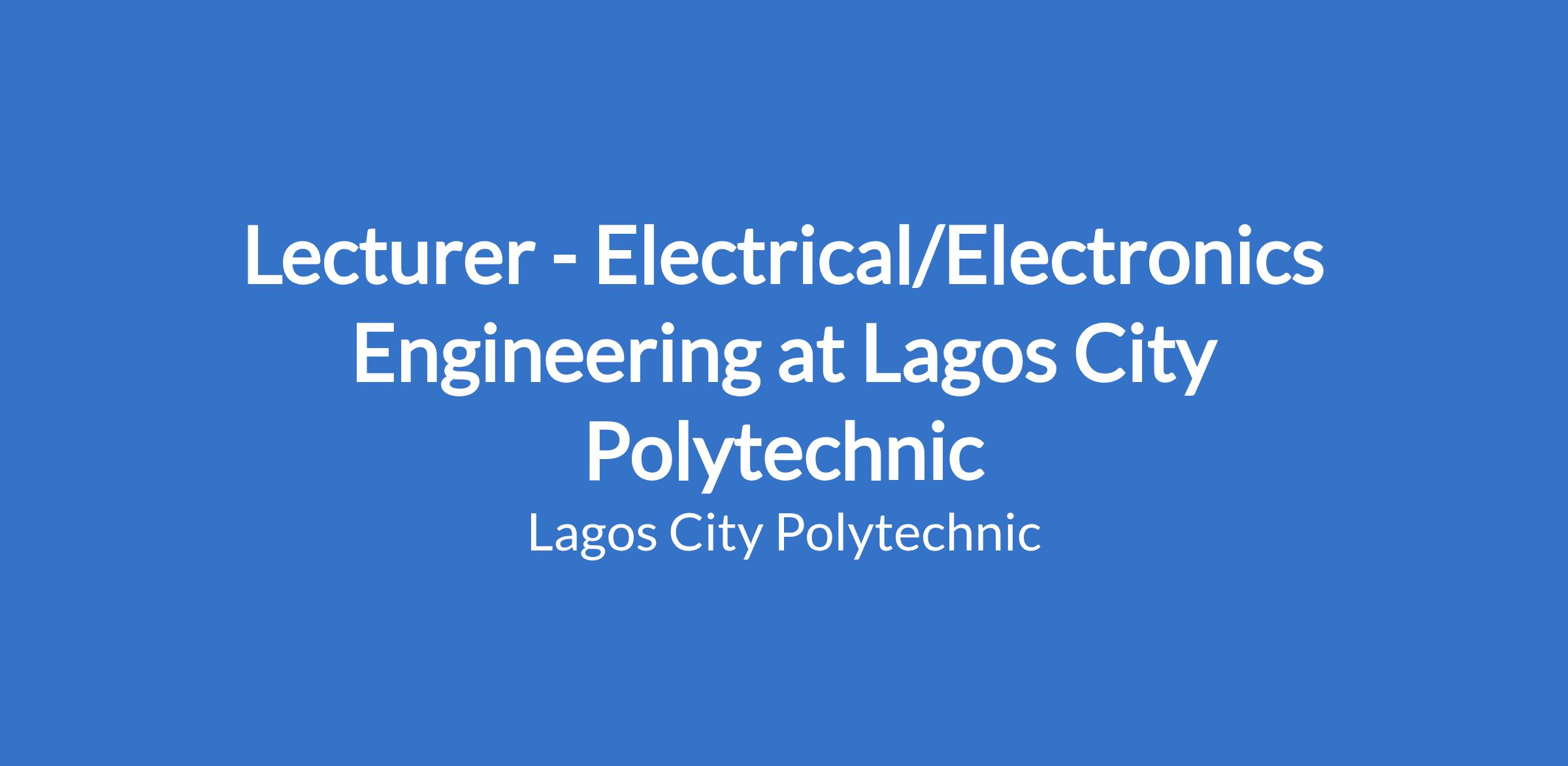 Lecturer - Electrical/Electronics Engineering at Lagos City Polytechnic