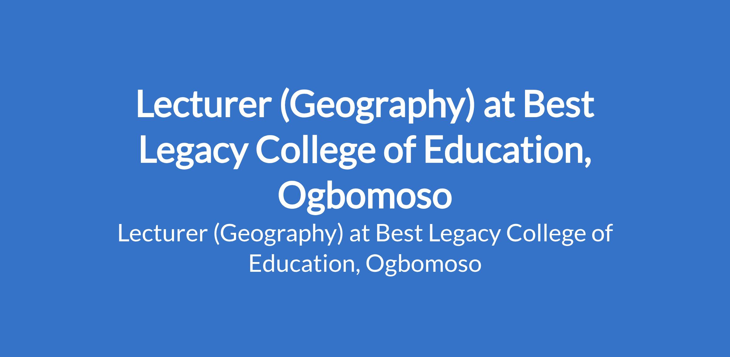 Best Legacy College of Education, Ogbomoso invites applications from suitably qualified candidates to fill the position of: Lecturer (Geography). The position is located in Oyo State. Interested candidates should possess a First Degree, not lower than Second Class Honors Lower Division in their respective field with a minimum of three (3) years Cognate experience.
