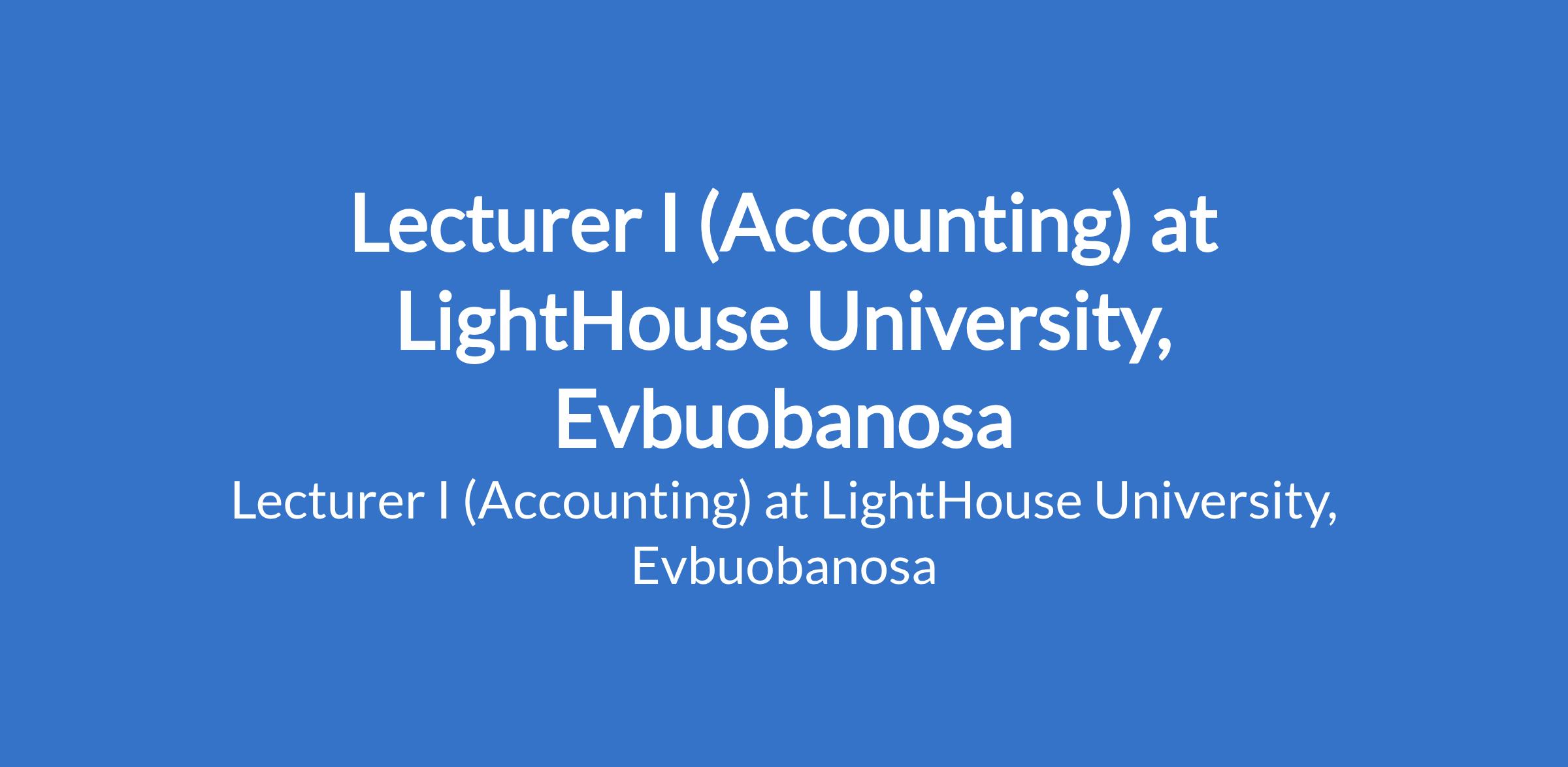 LightHouse University, Evbuobanosa invites applications from suitably qualified candidates to fill the position of: Lecturer I (Accounting). The position is located in Edo State. Interested candidates should possess a Ph.D. Degree in the relevant field; three years of post-doctoral teaching and research experience is required.