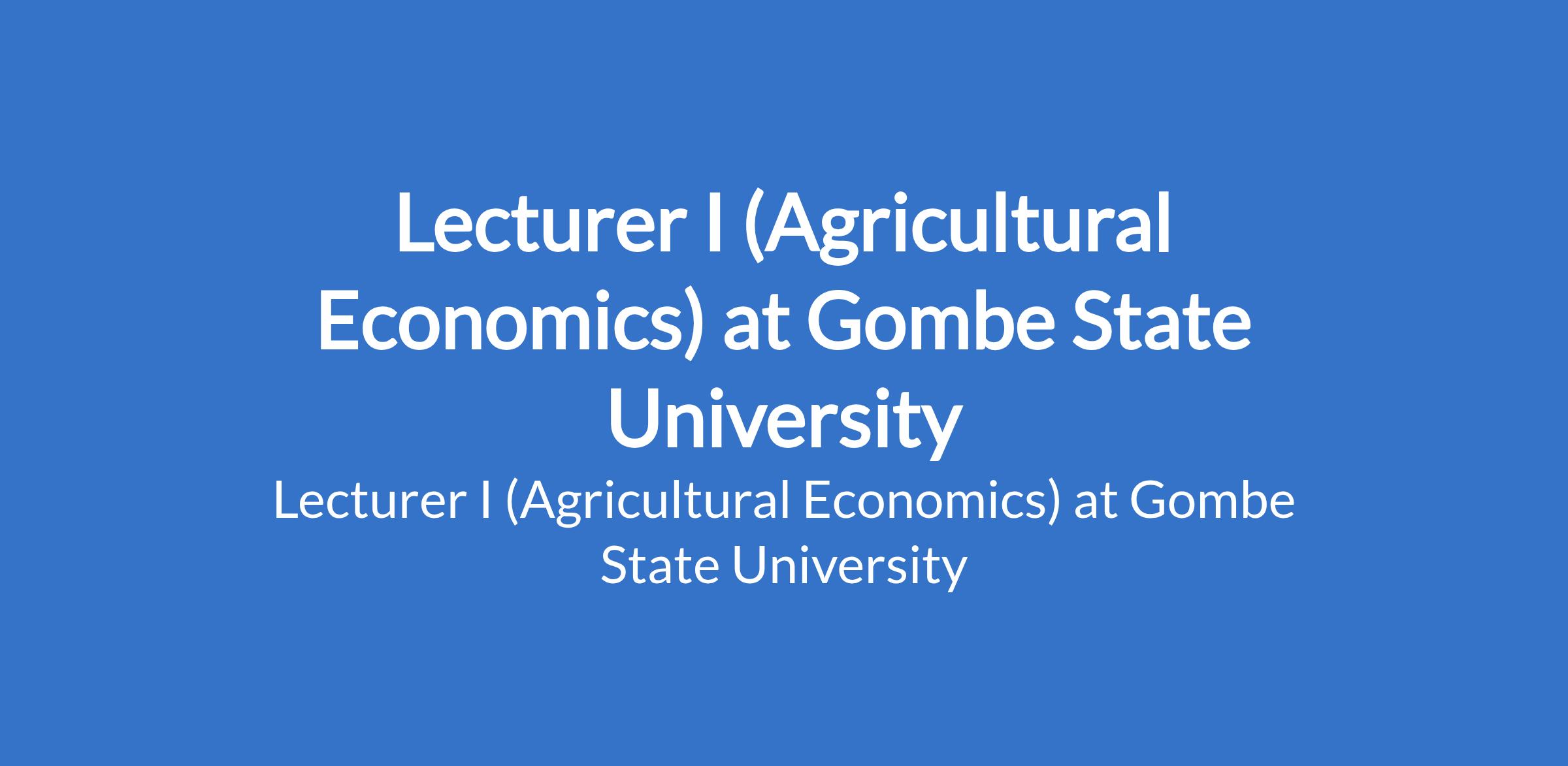 Gombe State University invites applications from suitable candidates to fill the position of: Lecturer I (Agricultural Economics). The position is located in Tudun - Wada, Gombe State. Interested candidates should possess a Ph.D Degree in a relevant discipline, minimum of three years as Lecturer II or equivalent, 3 - 6 years of teaching experience; with at least 12 publication points. Alternatively, a Master`s Degree with three years of teaching / research experience as Lecturer II, and at least 15 publication points.