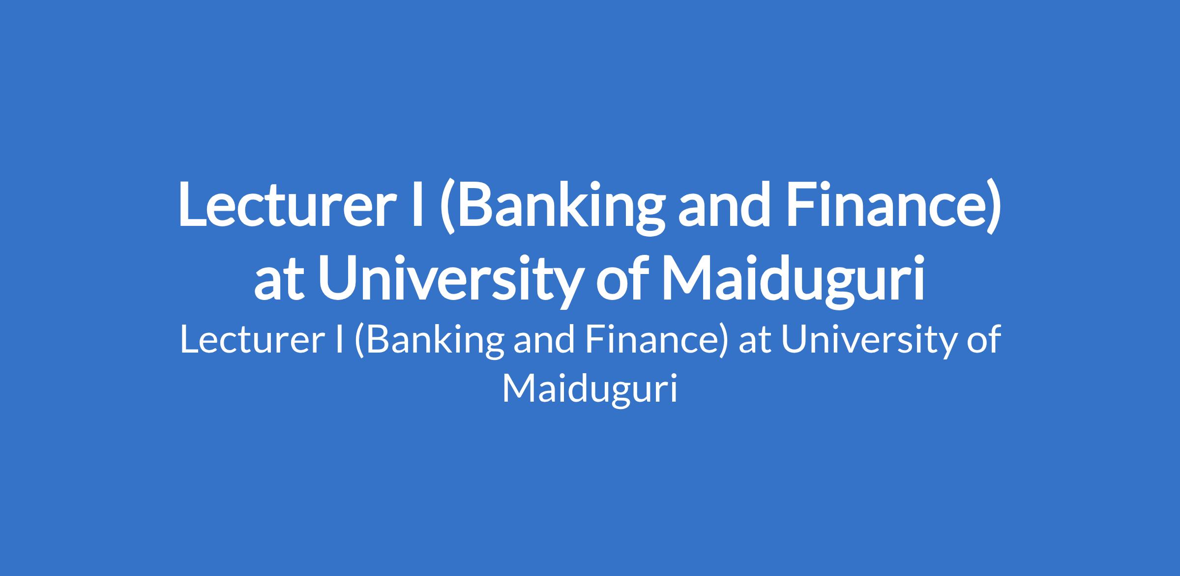 University of Maiduguri invites applications from suitable candidates to fill the position of: Lecturer I (Banking and Finance). The position is located in Borno State. Interested candidates should be a Master's Degree holder who has served as Lecturer II or equivalent for three years with a minimum of four years teaching experience and at least 16 admissible publication points, or recognised higher professional postgraduate fellowship where applicable.
