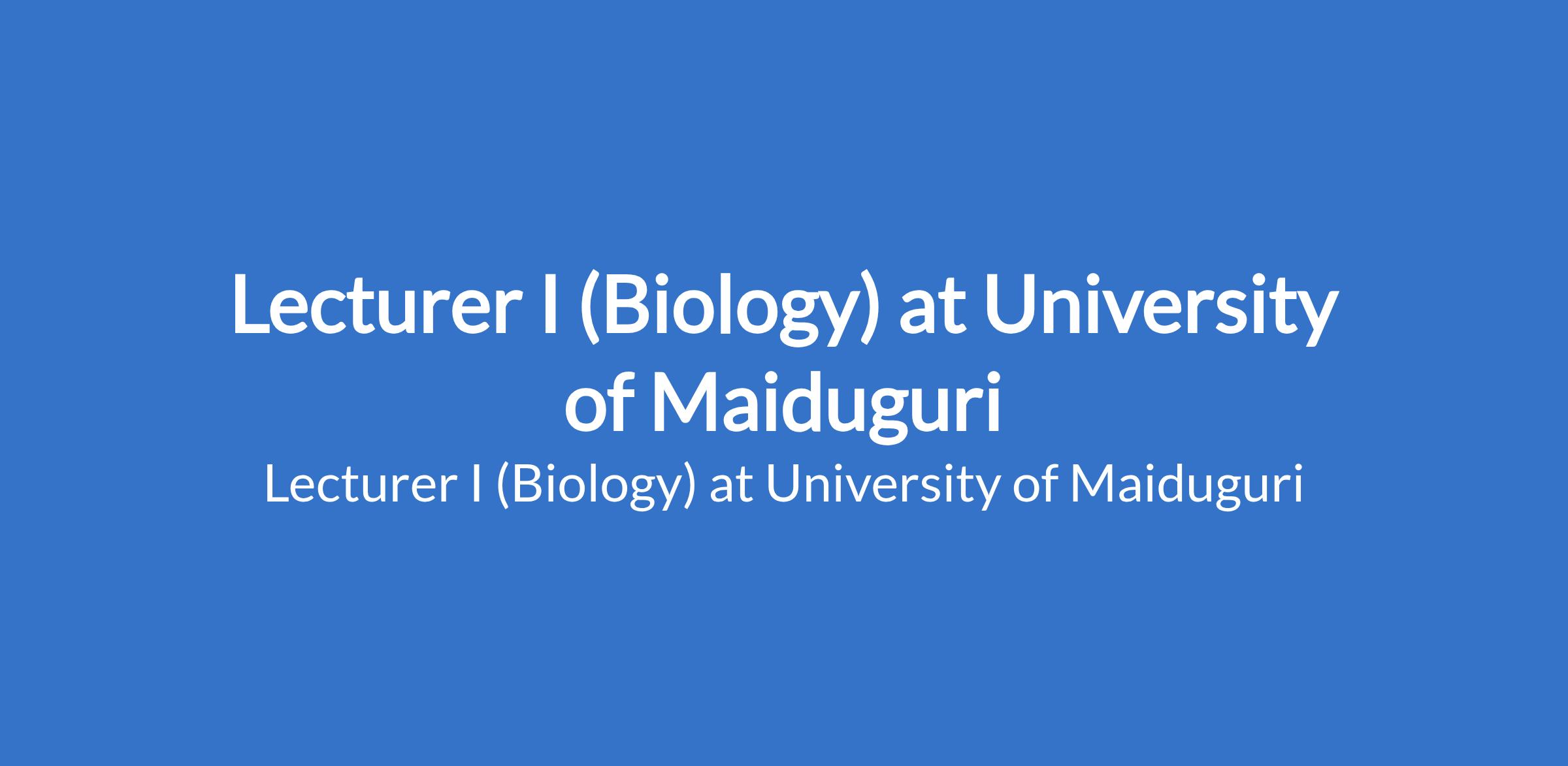 University of Maiduguri invites applications from suitable candidates to fill the position of: Lecturer I (Biology). The position is located in Borno State. Interested candidates should be a Master's Degree holder who has served as Lecturer II or equivalent for three years with a minimum of four years teaching experience and at least 16 admissible publication points, or recognised higher professional postgraduate fellowship where applicable.
