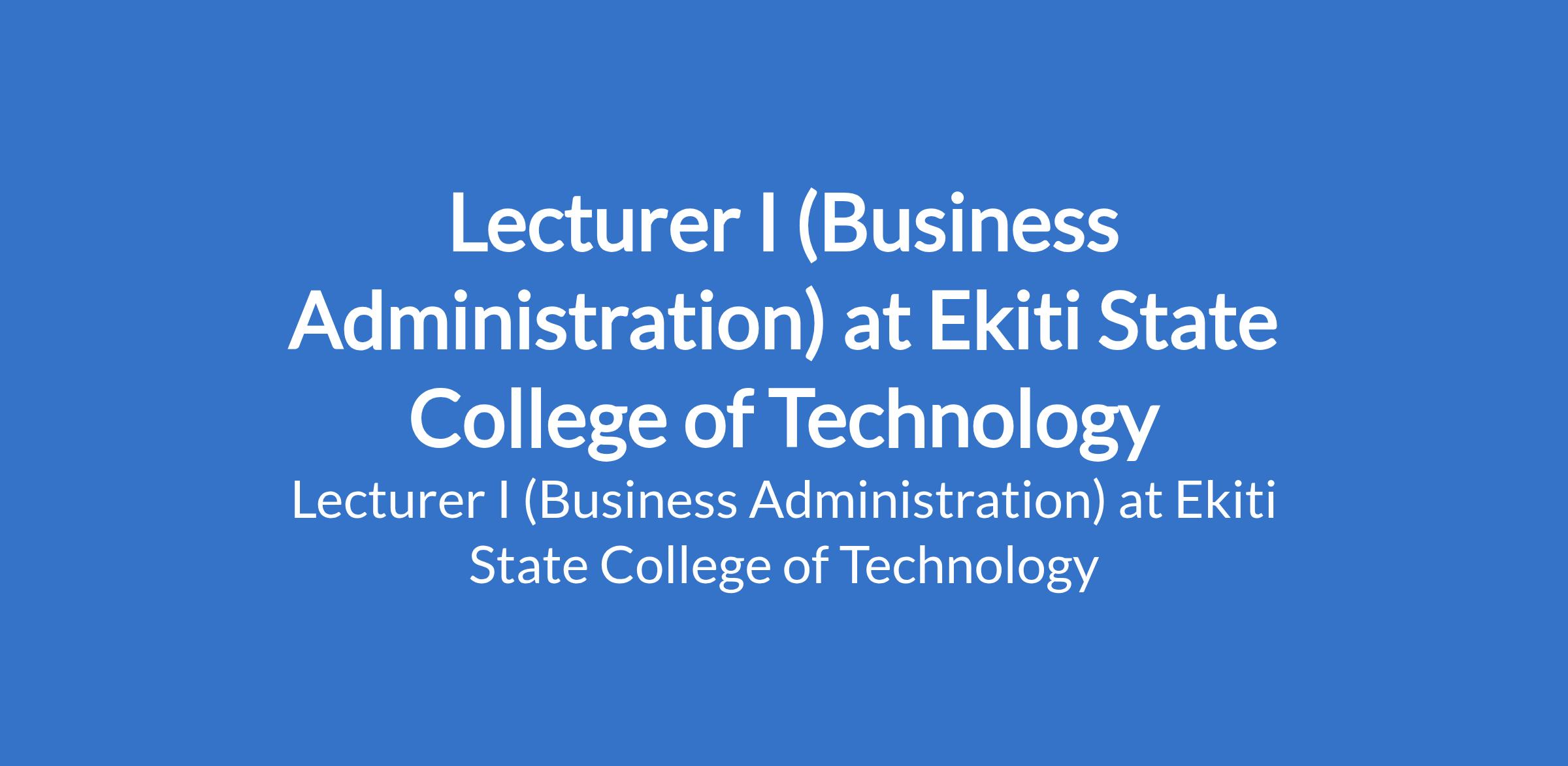 Ekiti State College of Technology is recruiting to fill the position of: Lecturer I (Business Administration). Interested candidates should possess a Masters Degree in Business Administration with a minimum of 9 years cognate teaching and research experience in a Polytechnic or similar technical and vocational education and training (TVET); Candidates is expected to have a good First Degree in the relevant discipline, with at least a second class lower division.