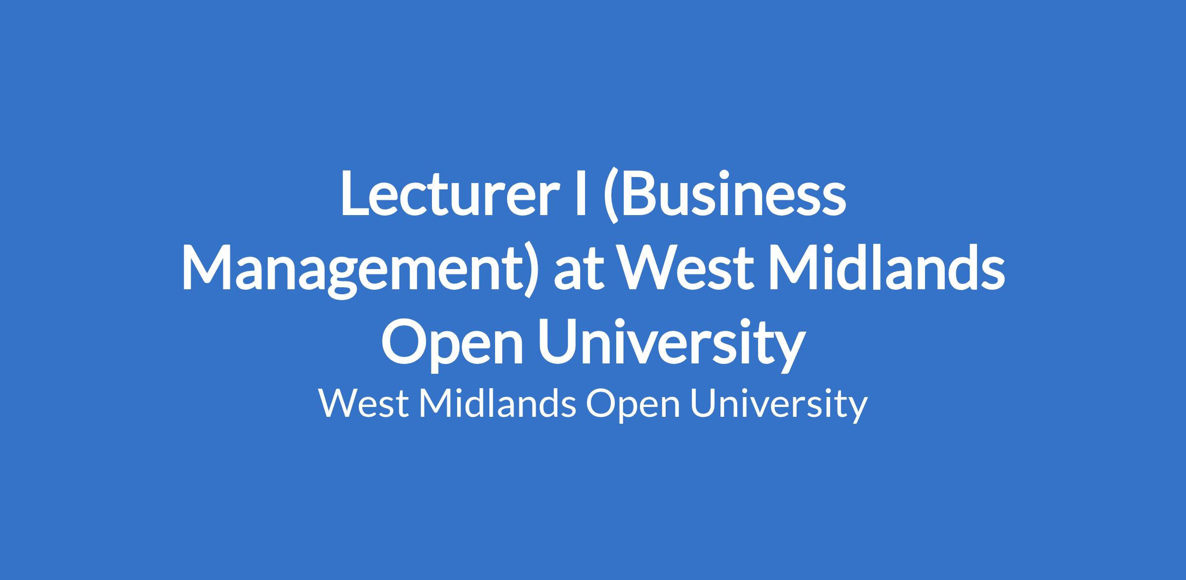 Lecturer I (Business Management) at West Midlands Open University