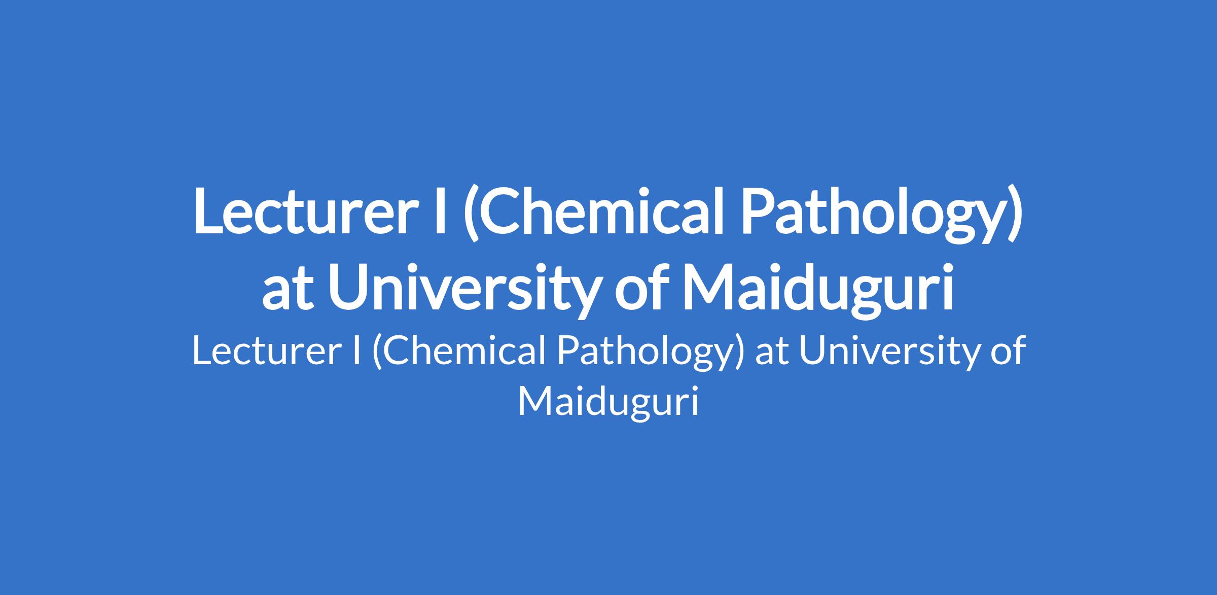 University of Maiduguri invites applications from suitable candidates to fill the position of: Lecturer I (Chemical Pathology). The position is located in Borno State. Interested candidates should be a Master's Degree holder who has served as Lecturer II or equivalent for three years with a minimum of four years teaching experience and at least 16 admissible publication points, or recognised higher professional postgraduate fellowship where applicable.