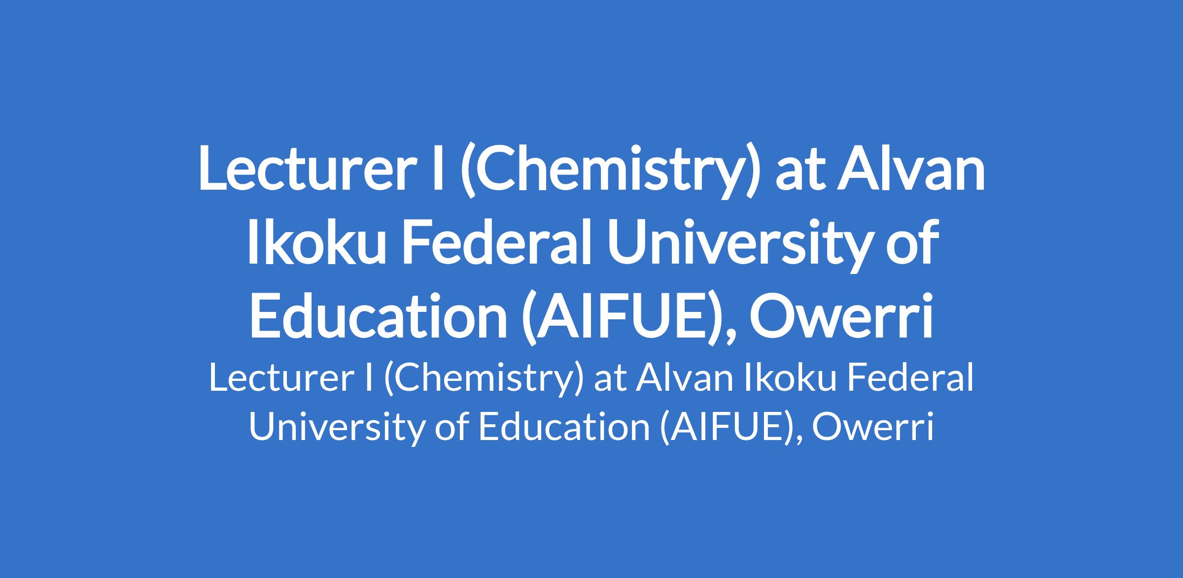 Alvan Ikoku Federal University of Education (AIFUE), Owerri invites applications from suitably qualified candidates for the position of: Lecturer I (Chemistry). The position is located in Imo State. Interested candidates should possess a Master's Degree in the relevant field with a minimum of 6 years of teaching and research experience, and not less than 3 years as a Lectuer II in a recognized university. A PhD in the relevant field shall be an advantage. Applicants must possess evidence of a teaching / research experience with scholary publications.