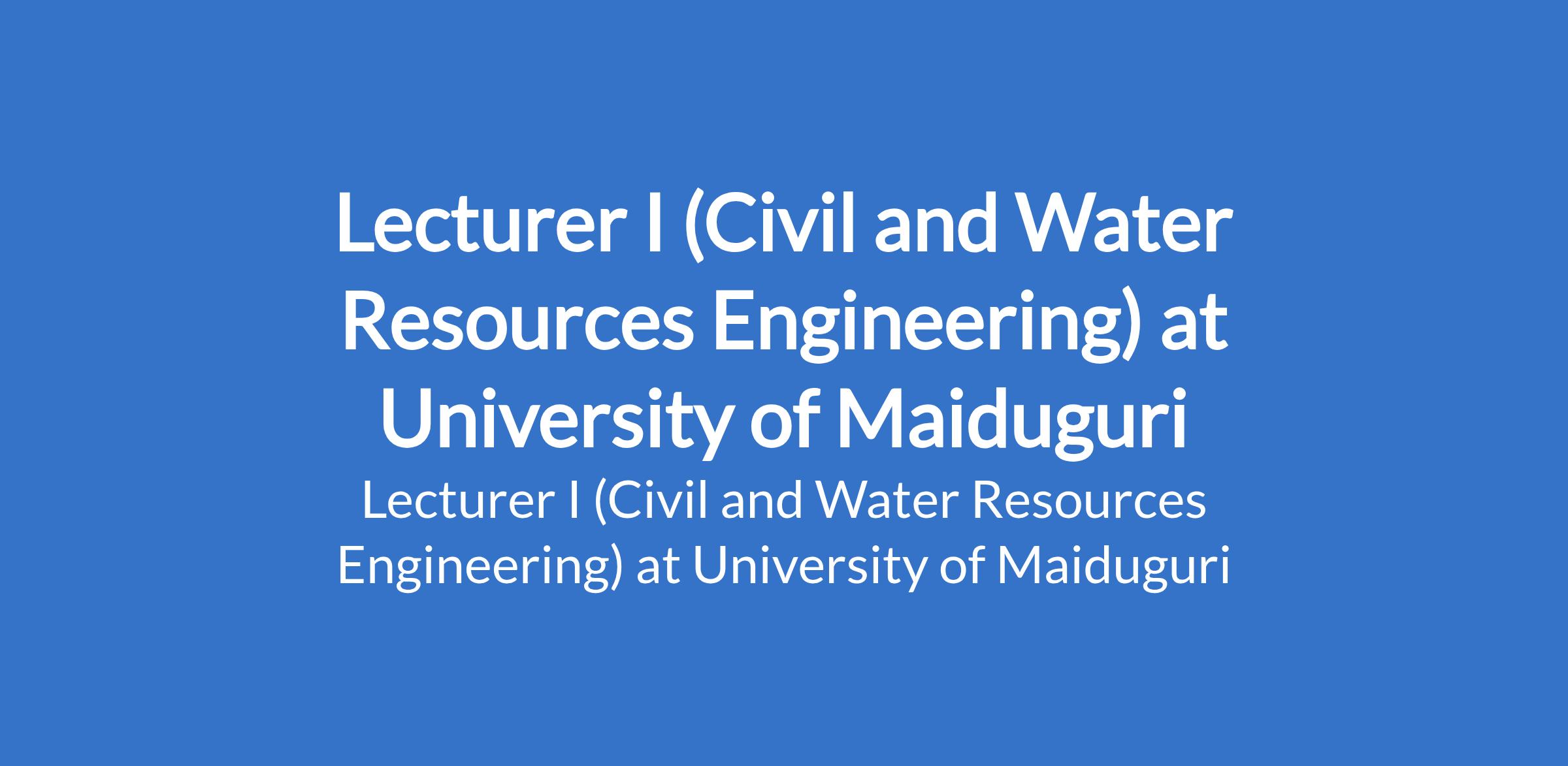University of Maiduguri invites applications from suitable candidates to fill the position of: Lecturer I (Civil and Water Resources Engineering). The position is located in Borno State. Interested candidates should be a Master's Degree holder who has served as Lecturer II or equivalent for three years with a minimum of four years teaching experience and at least 16 admissible publication points, or recognised higher professional postgraduate fellowship where applicable.